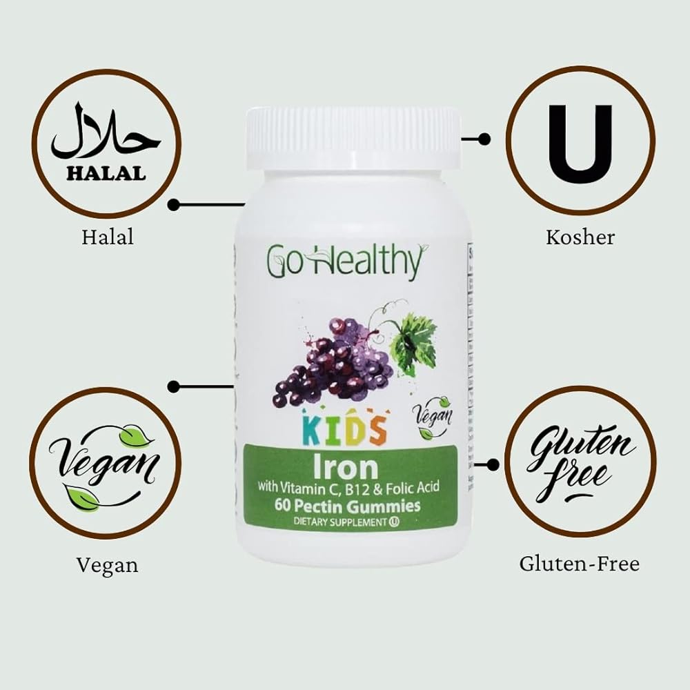 Go Healthy Iron Gummies للأطفال، نباتي، نباتي، غير معدّل وراثيًا، خالي من الغلوتين، كوشير وحلال - 30 وجبة