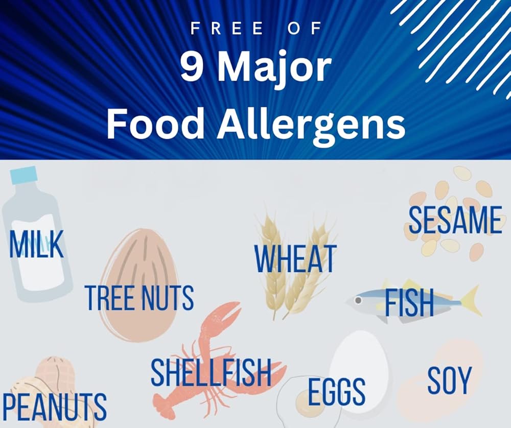- Allergy friendly - gelatin free, non-GMO, no: peanuts, tree nuts, sesame, soy, eggs, milk, yeast, wheat (gluten), fish or shellfish