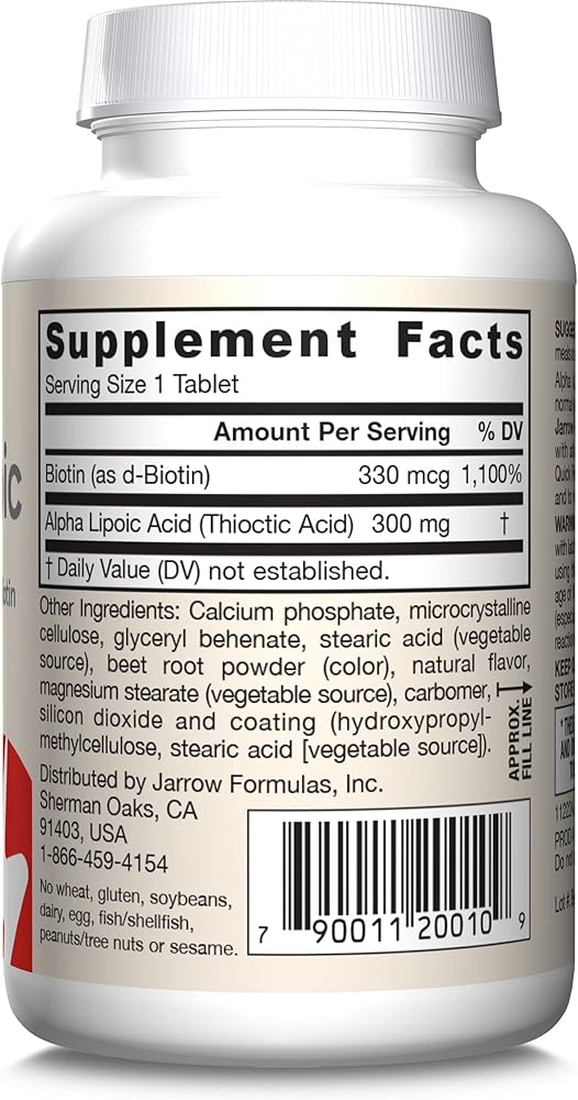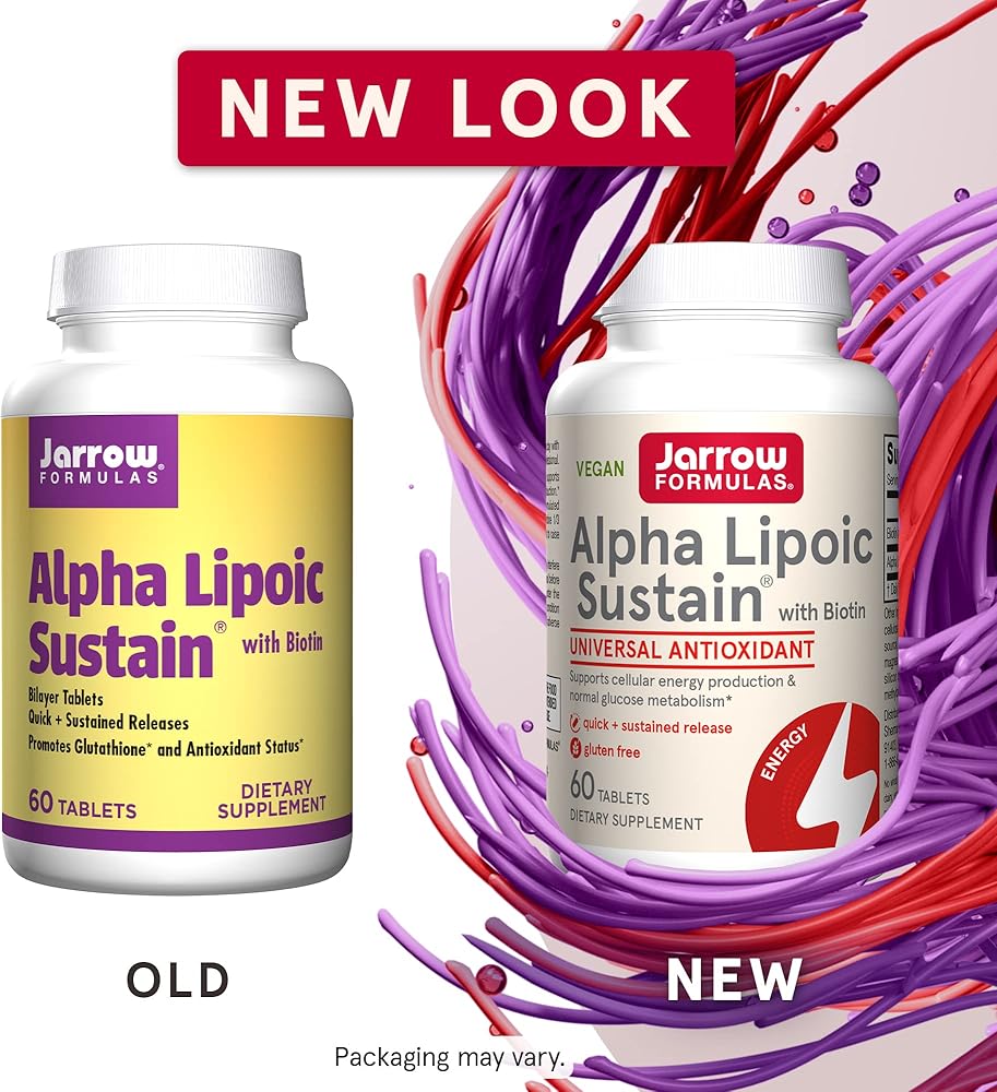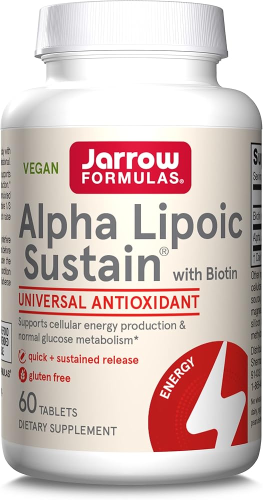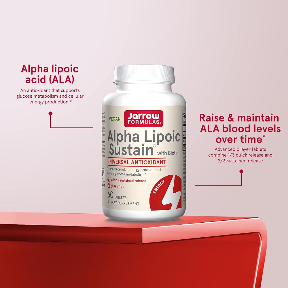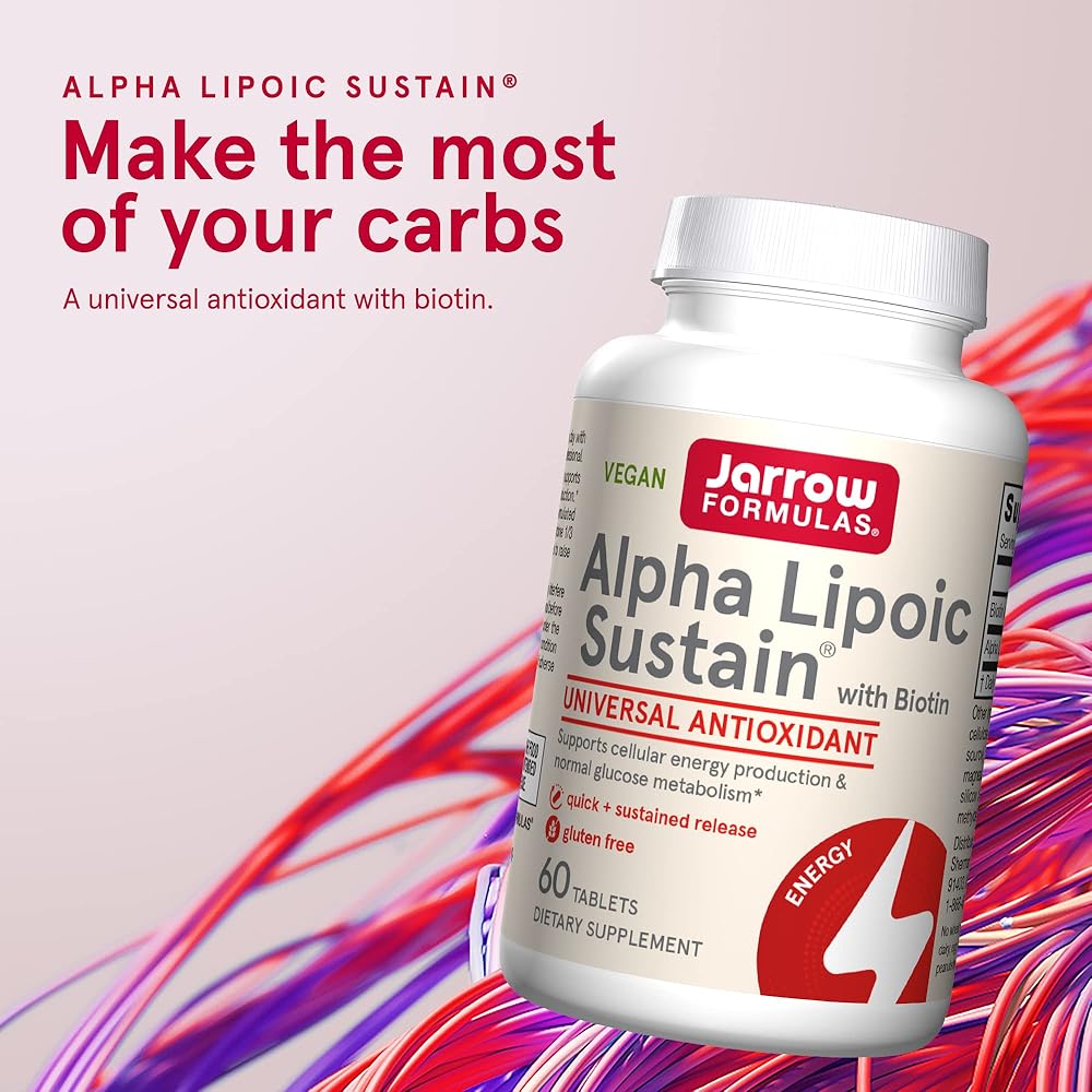 مضادات الأكسدة وإنتاج الطاقة الخلوية ومكمل دعم استقلاب الجلوكوز الطبيعي: يحتوي على زجاجة واحدة تحتوي على 120 قطعة من Jarrow Formulas Alpha Lipoic Sustain مع أقراص البيوتين لمدة 60 إلى 120 يومًا.