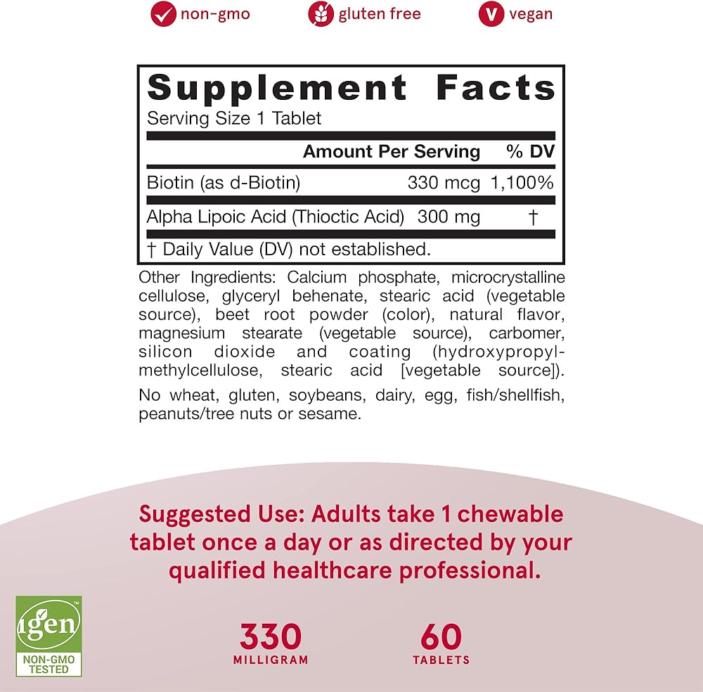 مكمل غذائي يحتوي على 300 ملغ من حمض ألفا ليبويك، وهو عامل مساعد في إنتاج الطاقة ويشارك في استقلاب حمض الجلوكوز الدهني والأحماض الأمينية.