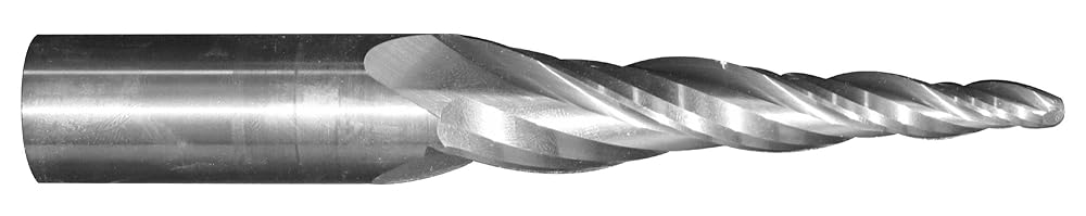 Material: All tapered end mills are produced from a premium grade of super submicrograin carbide to give you the maximum hardness and toughness. This means longer cutting life with less breakage * Grinding: All flutes are hollow ground with double clearance angles. The flute face is also hollow ground and polished to assure free cutting actions with minimum of heat generation. All tools have end cutting teeth. Special grinding procedures and equipment assures a high degree on concentricity between shank and cutting flutes * Tolerances: Taper angles constant to +/- .001" per inch of flute length. Tip diameter tolerances are held at +/- .002". Shank diameter tolerances are -.0002 to -.0005".