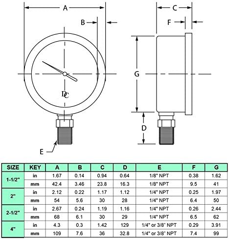 4" Oil Filled Vacuum Pressure Gauge - Stainless Steel Case, Brass, 1/4" NPT, Lower Mount Connection, -30HG/30PSI