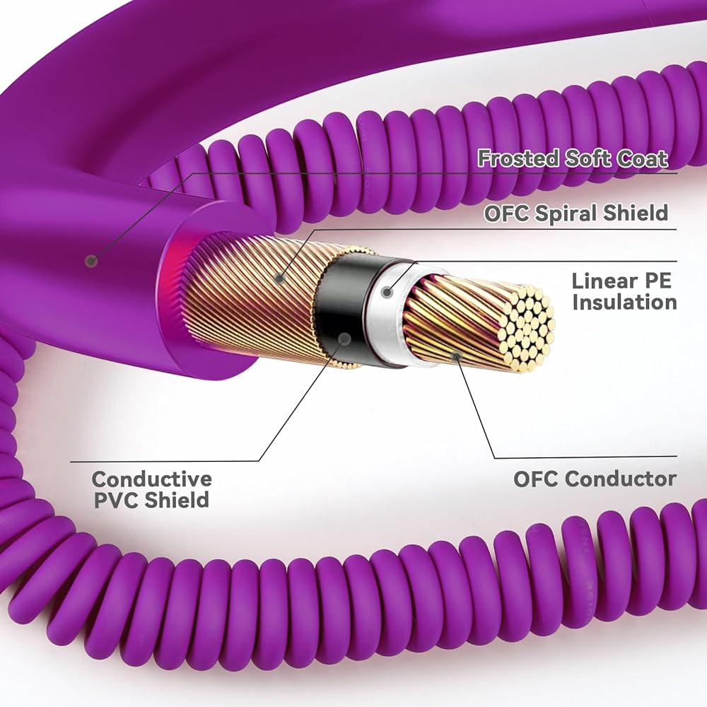 【بنسبة 95 ٪ من التدريع المزدوج】 درعًا رئيسيًا للدرع الفرعي للبلواح الباطنية والأسلاك النحاسية العشوائية لديه رفض أفضل للضوضاء ومكافحة التداخل الذي يقارن كابل الغيتار طبقة رقائق الألومنيوم الشائعة حتى الحركة ، لأن رقائق الألومنيوم ستخسر التدريع بعد بعض الانحناء.
