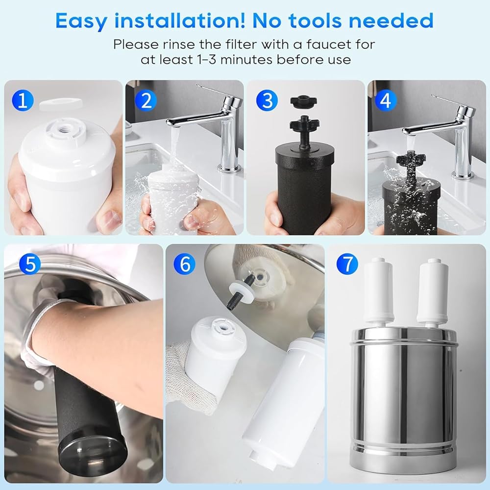 【الاهتمام بخطوات التثبيت】: أولاً ، يرجى توصيل الحنفية لطرح مرشح الكربون الأسود ومرشح الفلورايد لمدة 1-3 دقائق على الأقل قبل الاستخدام. في محاولة لغسل مسحوق مواد التوليف المعدنية المنشطة والكربون المنشط مسبقًا. لا يشير مستوى TDS تمامًا إلى جودة الماء ولا تخفض مرشحاتنا قيمة TDS.