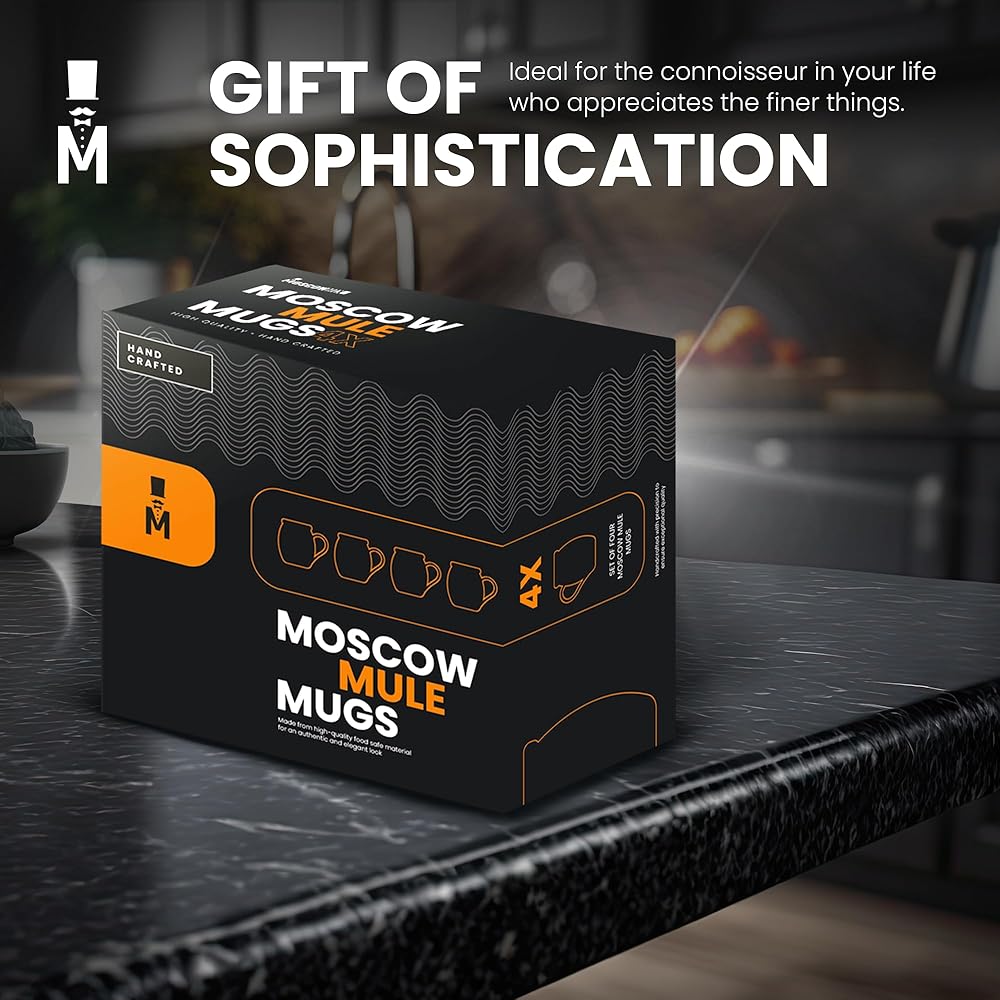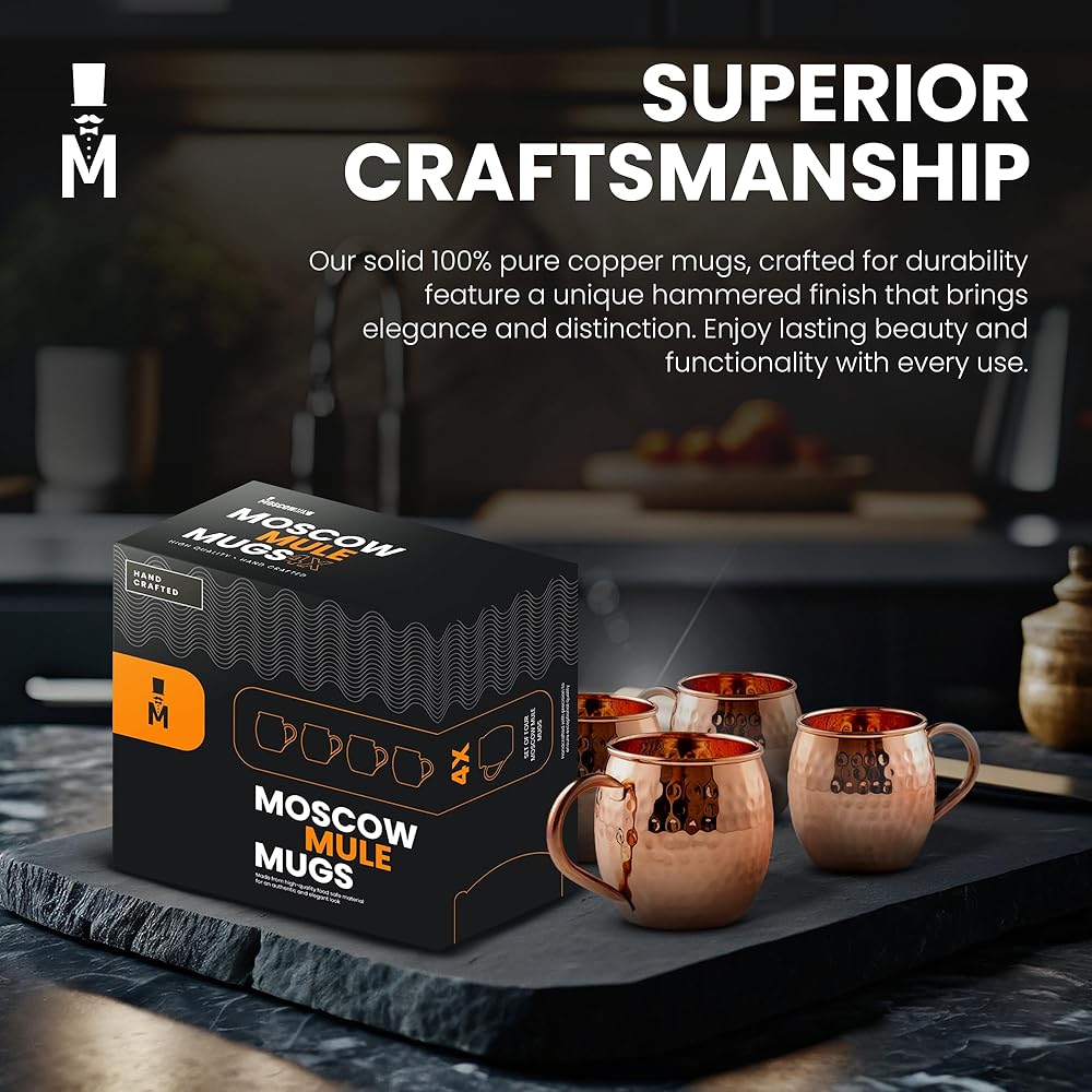 تجربة بغل موسكو الأصيلة: تغمر نفسك في الجوهر الحقيقي لكوكتيل موسكو بغل مع هذه المجموعة من 4 أكواب نحاسية أصلية نقية ، مصممة خصيصًا لتعزيز النكهات وعرض هذا المشروب الأيقوني.