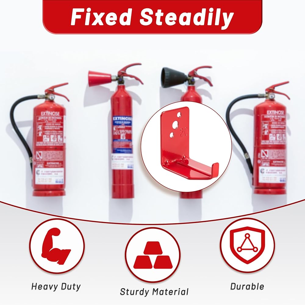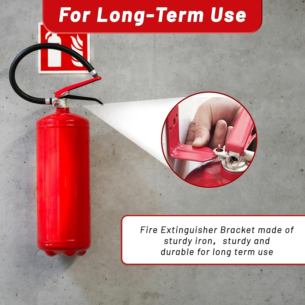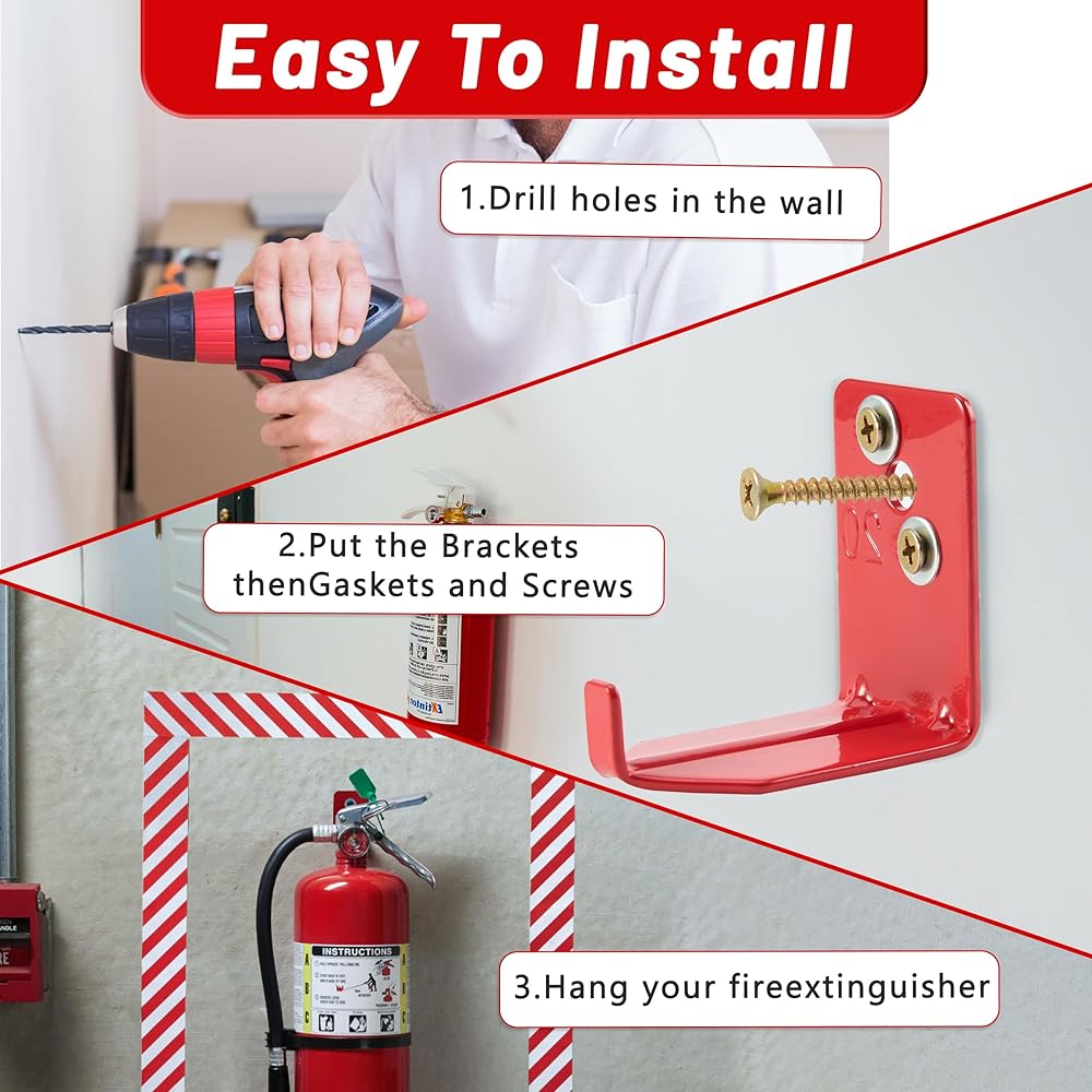 • Easy Installation: Installing this fire extinguisher holder wall mount is quick and hassle-free. Simply drill holes in the wall, secure the bracket with the included screws and washers, and attach your extinguisher for a secure fit.