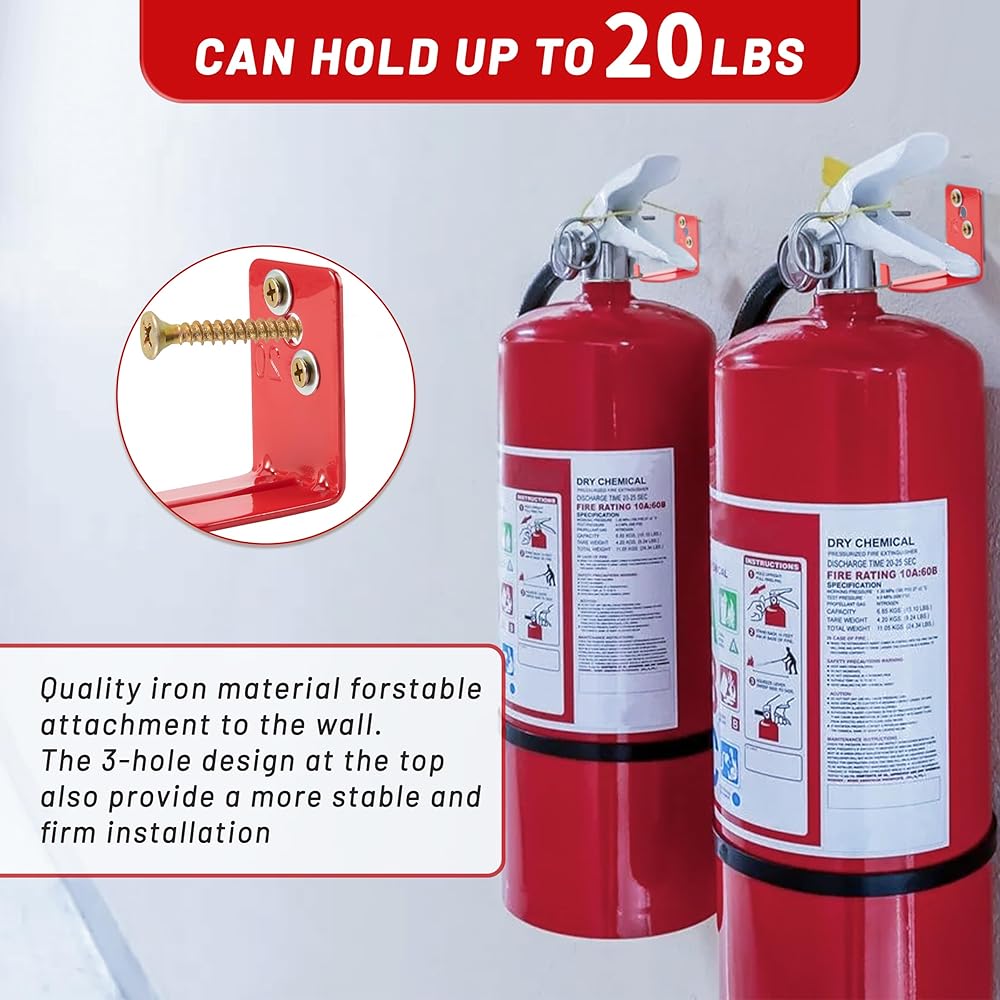 • Durable and Reliable: This fire extinguisher mounting bracket is designed to support up to 20 lbs, offering excellent durability. The sturdy iron construction resists wear and deformation, ensuring long-term performance.