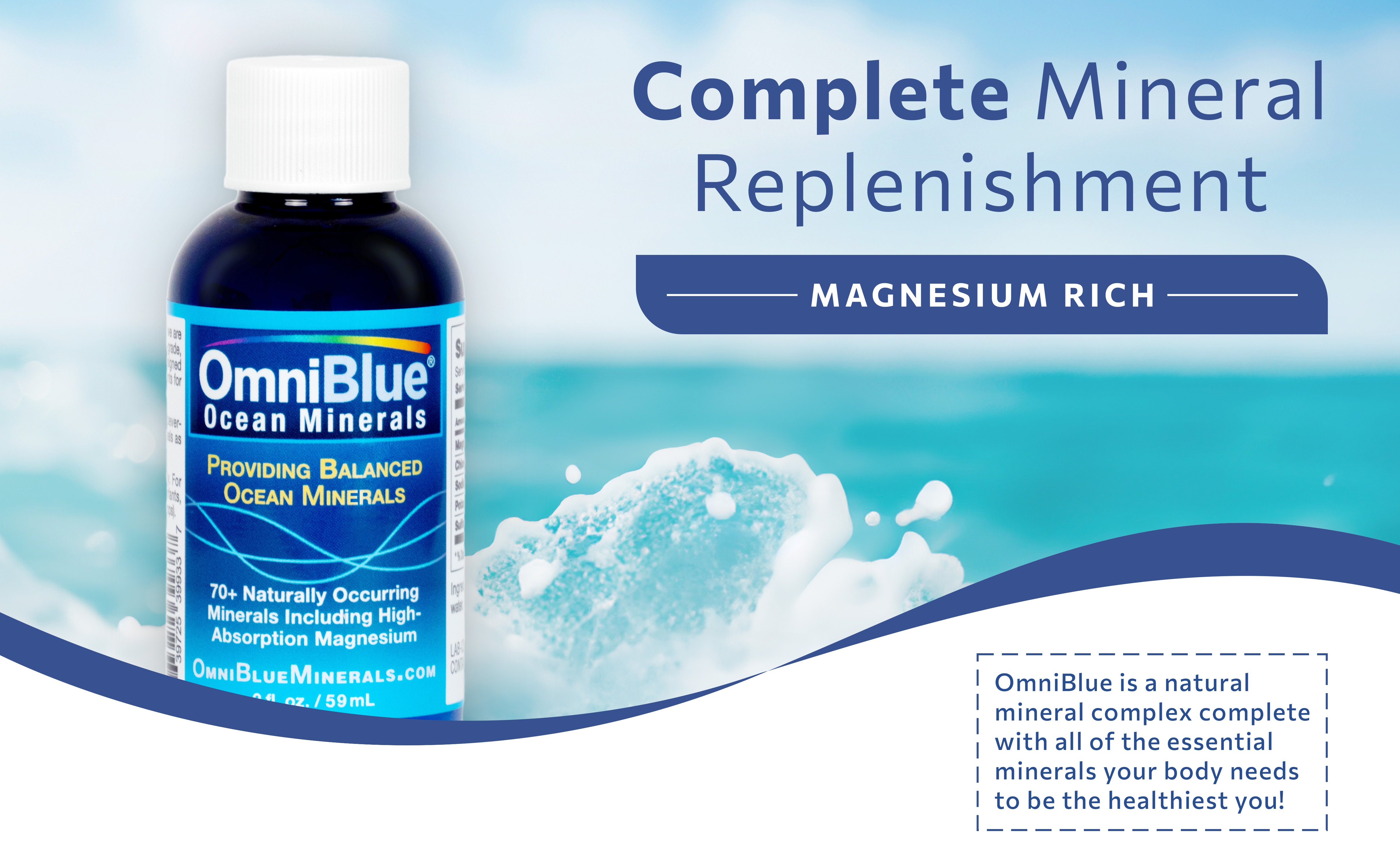 • OmniBlue هو مساعدك الطبيعي لإعادة التمعدن، حيث تم إنشاؤه من مكون واحد بسيط - مياه المحيط. يتم حصادها فقط من المياه النقية للحاجز المرجاني العظيم في أستراليا. يقدم منتجنا مجموعة وفيرة من أكثر من 70 معدنًا تعمل على تحسين وظائف الجسم. يظل OmniBlue وفيًا لجودته الطبيعية، مما يعني أن منتجنا يأتي مباشرة من المحيط إلى المائدة، لذلك 0 سكر و0 إضافات و0 أي شيء صناعي!