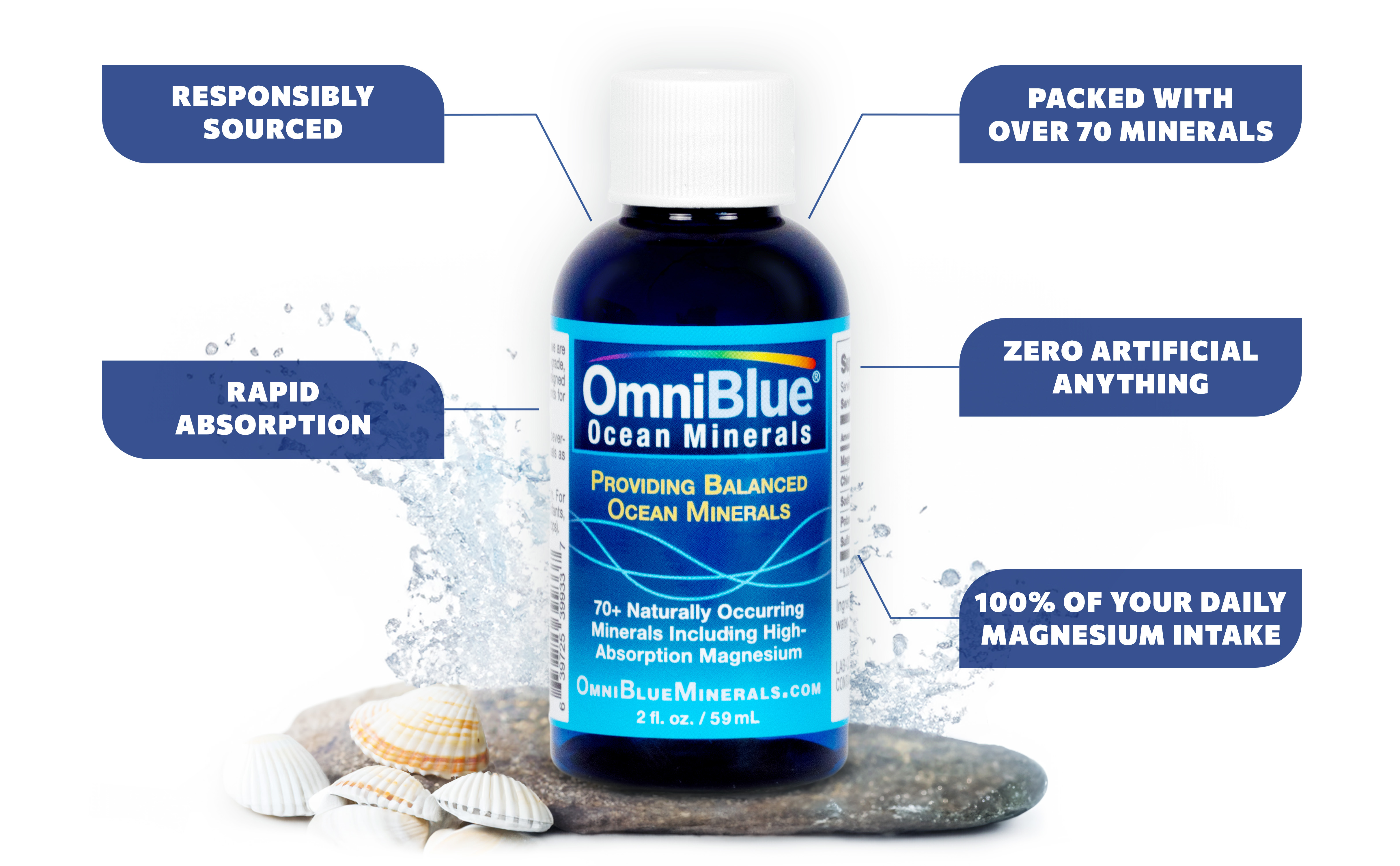 • 420 ملغ من المغنيسيوم: توفر OmniBlue Ocean Minerals أعلى مستوى من المغنيسيوم الطبيعي والصافي من الدرجة الصيدلانية المتوفر في السوق اليوم. مع أكثر من 420 ملغ من المغنيسيوم الطبيعي لكل ملعقة صغيرة (100% DV)