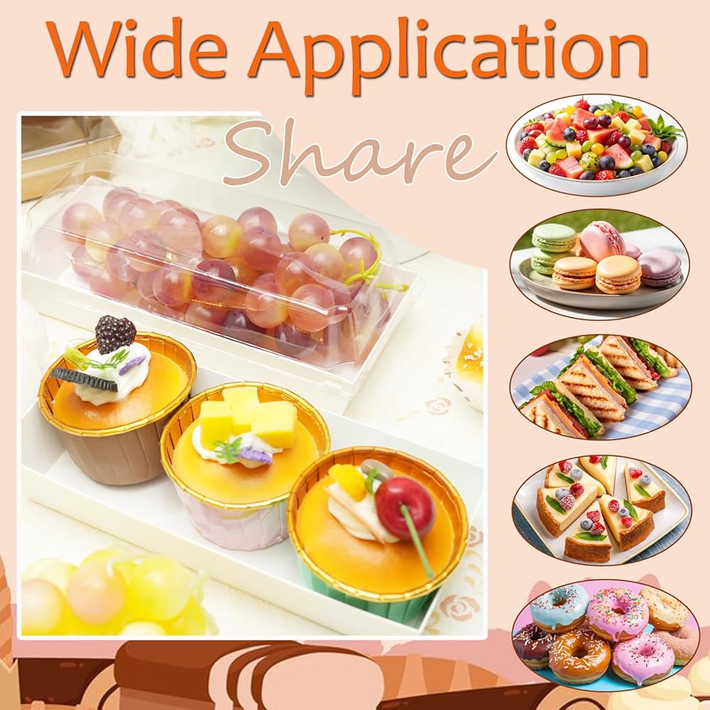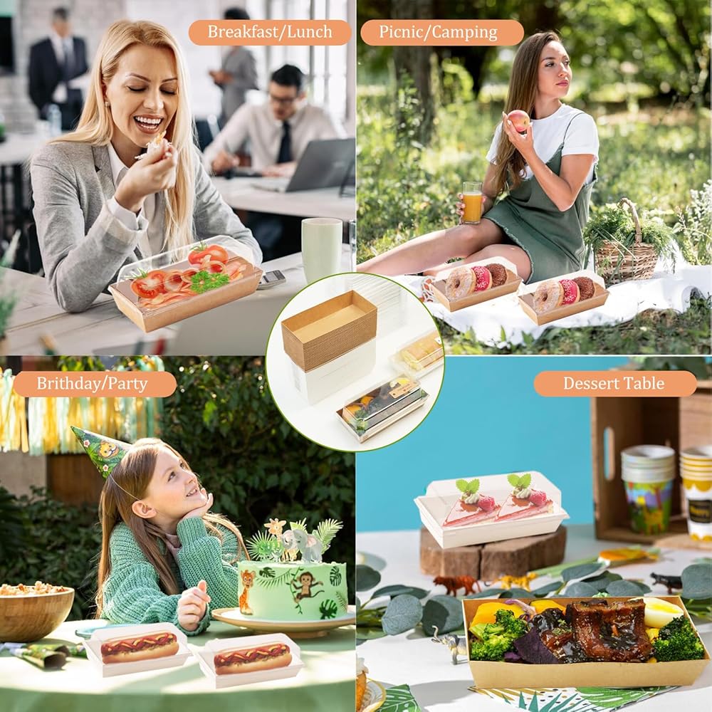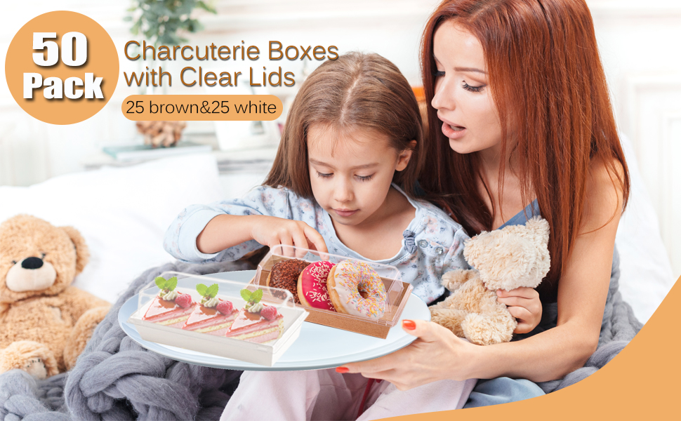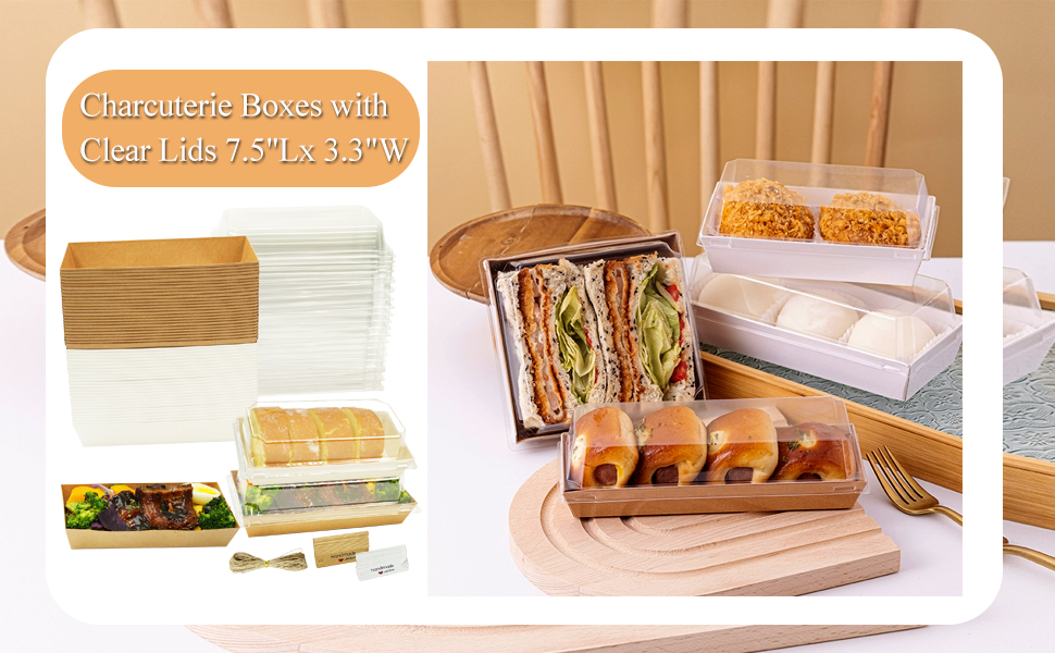 50 حزمة صناديق charcuterie صغيرة مع أغطية واضحة 7.5 "LX 3.3" W- للذهاب إلى حاويات Mini Treat Mini ، وحاويات المخبز المتاح المستطيل ، وصناديق الحلوى لملفات تعريف الارتباط ، شوكولاتة شريحة الكعكة (50)