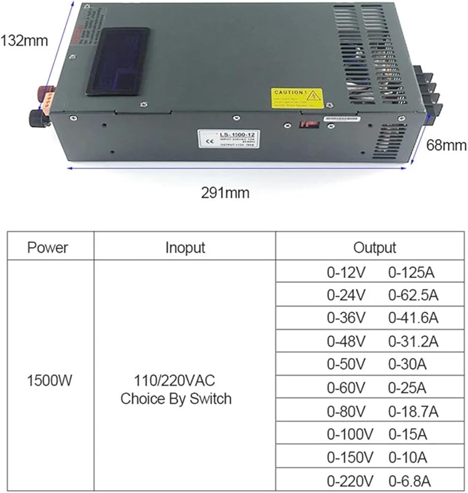 1500W Switching Power مع العرض 0-24V 36V 48V 60V 70V 80V 90V 110V 220V 300V 350V قابلة للتعديل DC والتيار (0-60V 0-25A)