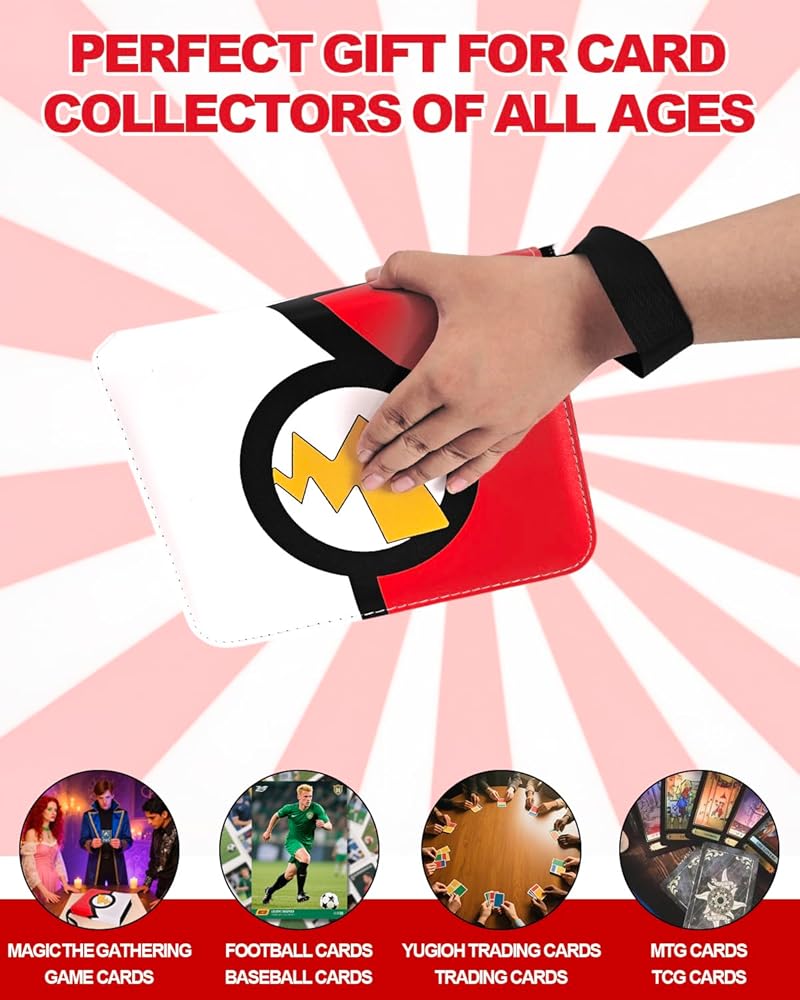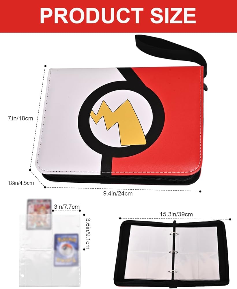 Comfortable, Flexible Portability: The card book features an external wrist strap, making it easy to carry. Inside, a 3‑ring binder opens to add or remove sheets, customizing capacity as your collection grows. Sturdy metal rings keep sheets secure for display and trading on the go