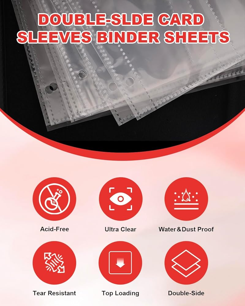 High‑Clarity, Durable Sleeves: This binder for cards uses acid‑free PP pages that showcase your cards in vivid detail while resisting water, stains, and fading. The top‑loading design prevents cards from slipping, bending, or wrinkling, keeping your collection flawless