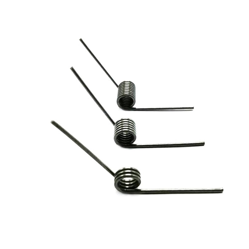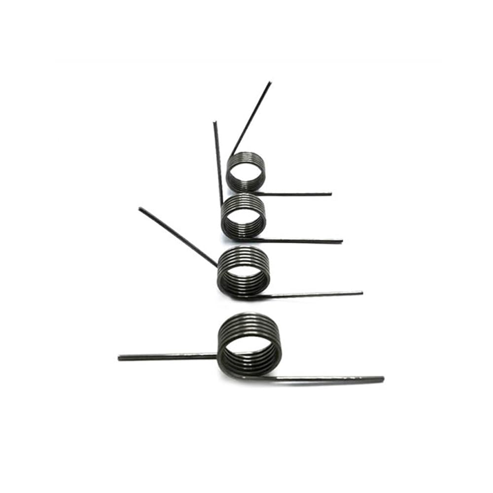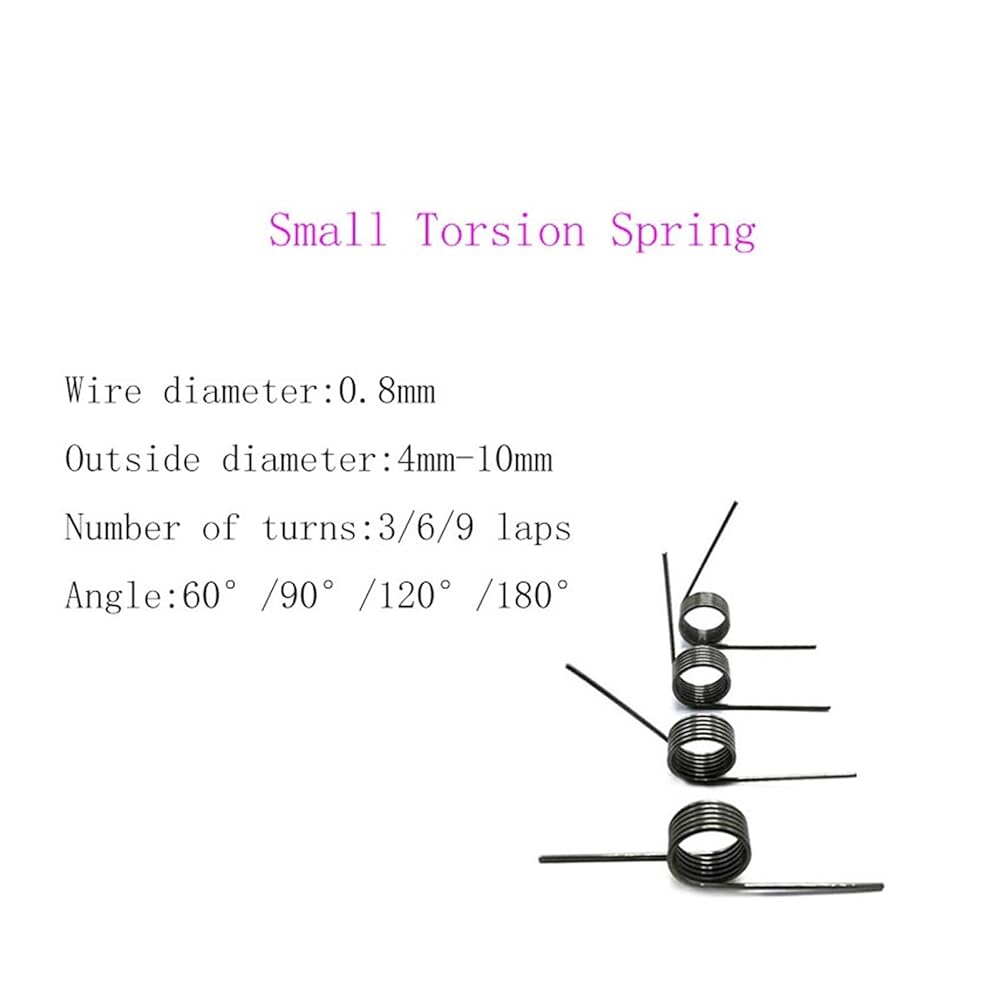 Spring commonly used materials: spring steel, 65 manganese steel, 304 stainless steel,Product Name: Multiple specifications single torsion springProduct Materials: Spring steelSurface Treatment: UntreatedProduct Size: Wire diameter (0.8mm) * Outside diameter (4-10mm) * Number of turns (3/6/9 laps) * Angle(60/90/120/180)Product Quantity: 10Pcs