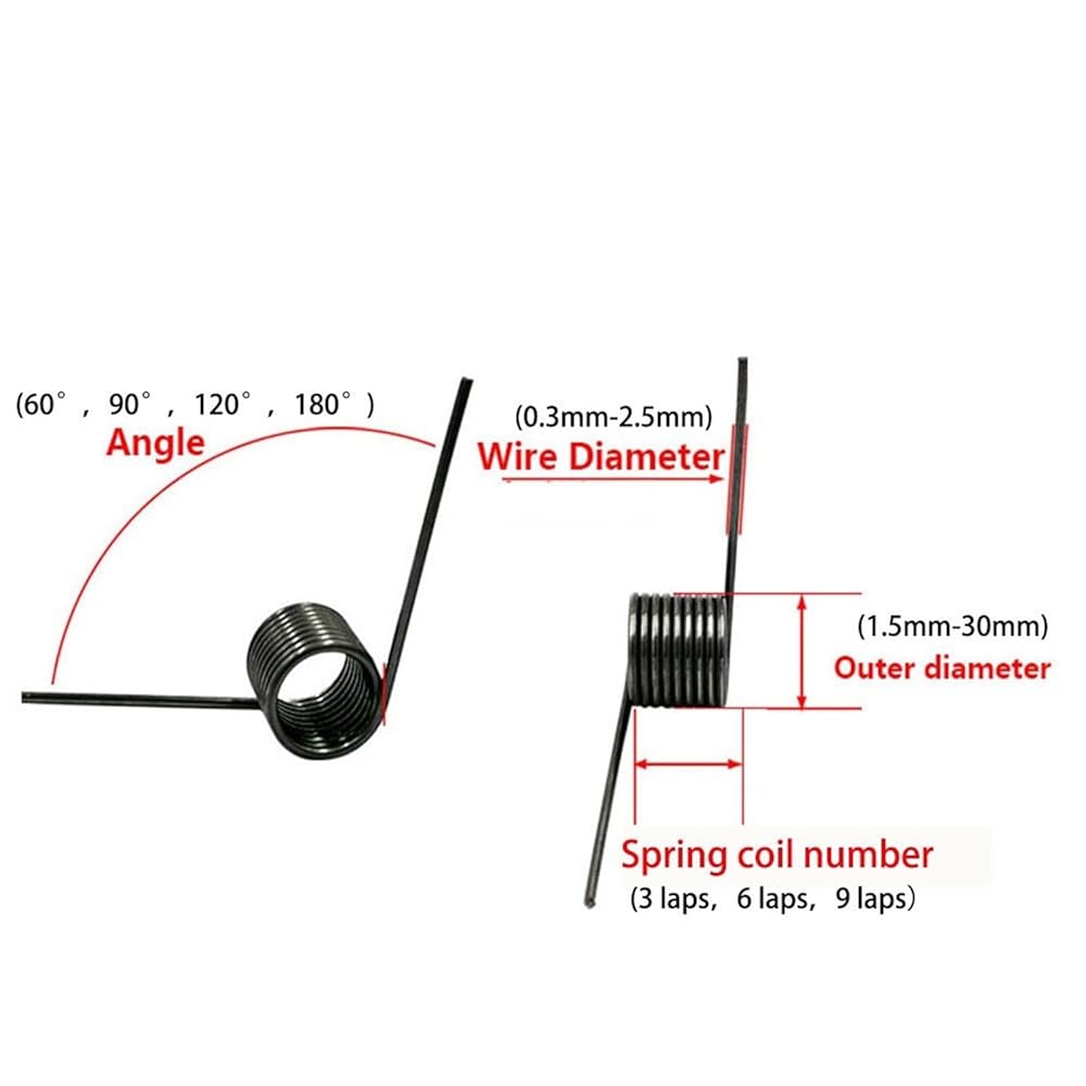 Spring commonly used materials: spring steel, 65 manganese steel, 304 stainless steel,Product Parameters:Name:Torsion SpringMaterials:65Mn Spring SteelSurface Treatment:UntreatedQuanity:10Pcs