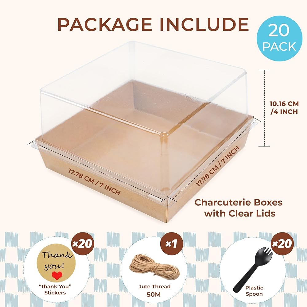 مجموعة القيمة المليئة: تضم مجموعتنا 20 صناديق كعكة صغيرة بحجم 7 × 7 × 4 بوصات ، إلى جانب 20 ملعقة بلاستيكية ، 20 ملصقًا ، وحبل القنب. يمكنك استخدام حبل القنب والملصقات لتخصيص صناديق الحلوى ، مما يجعل العبوة أكثر روعة