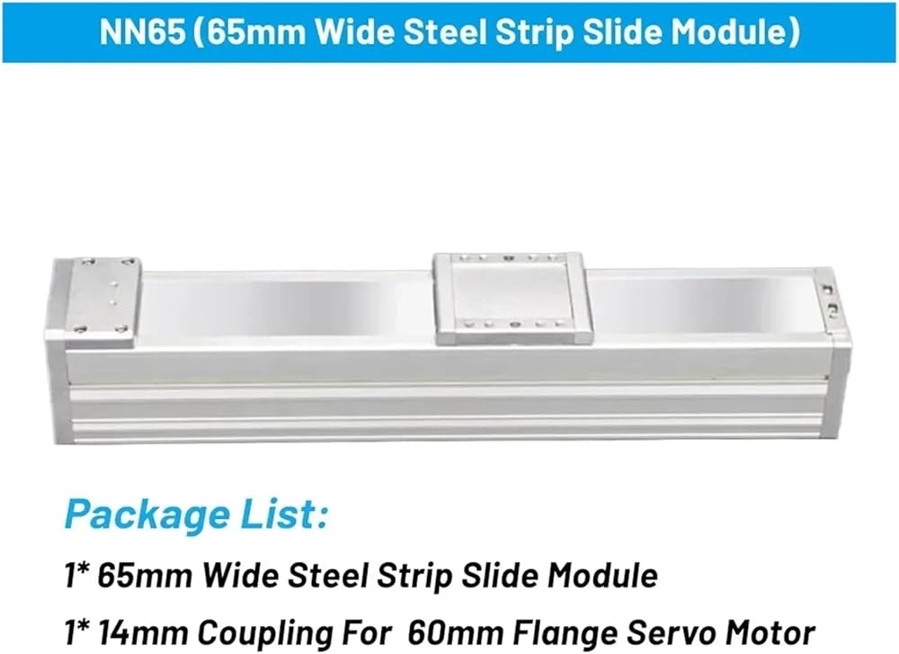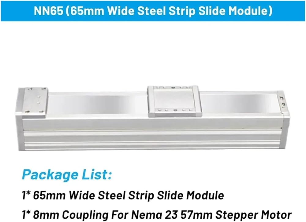 rail Model Number : NN65 Guide Width or Diameter : 65mm Effective Stroke : 100mm-1300mm Optional Ballscrew type : SFU1605/SFU1610/SFU1620 Horizontal load : 35KG (Max) Vertical load : 24KG (Max)