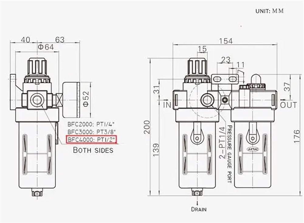 - BFC4000 1/2" Air Filter Regulator Combination Lubricator ,FRL Two Union Treatment ,BFR4000 + BL4000