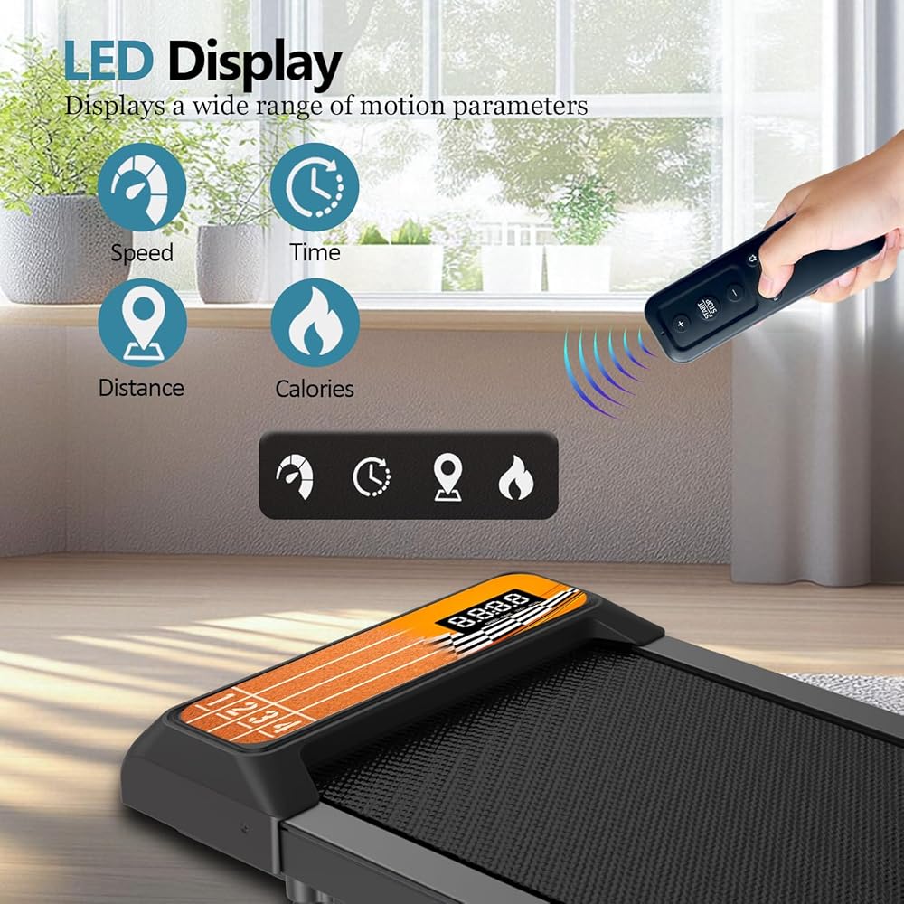 【App readl -timedata تتبع والتحكم عن بُعد】 حلقة مفرغة محمولة لها شاشة LED. يتصل بتطبيقات البرمجيات Kinomap و Zwift. تتبع السرعة والمسافة والوقت والسعرات الحرارية في الوقت الفعلي. يتيح لك عنصر التحكم عن بُعد المضمّن ضبط السرعة وبدء أو إيقاف حصيرة المشي.