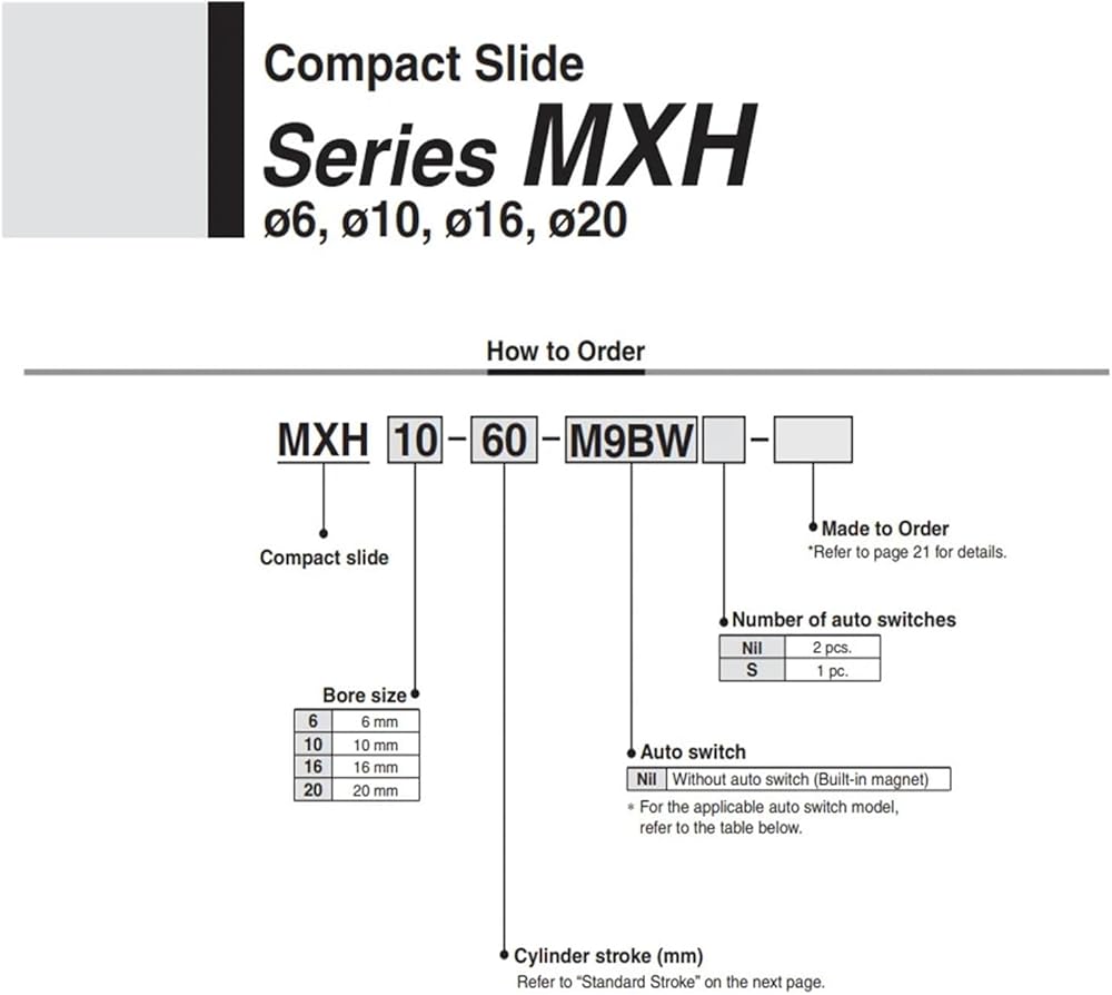 MXH20-5 MXH20-10 MXH20 MXH20-15 MXH20-20 MXH20-25 MXH20-30 MXH20-40 MXH20-50 MXH20-60 Compact Slide Cylinder
