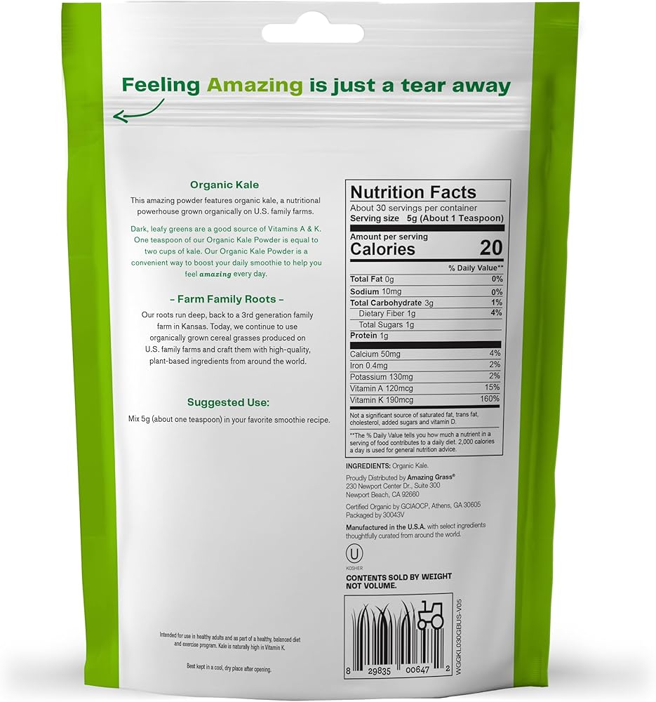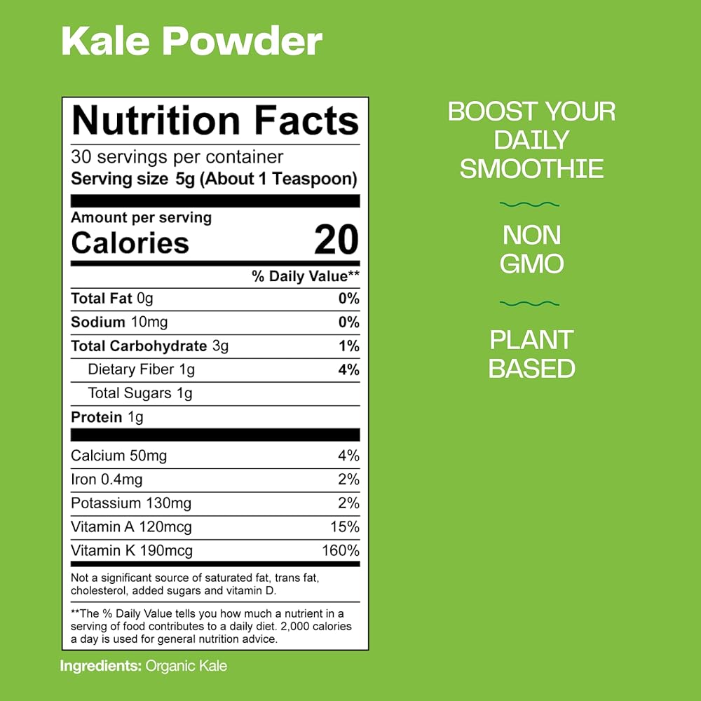 نوترينت ريتش سموثي بوست 1 ملعقة صغيرة = كوبان من الكيل العضوي المعتمد من وزارة الزراعة الأمريكية من شركة GCIAOCP عضوي على مدى أكثر من 3 أجيال نمرنا أعشاب الحبوب الغنية بالمغذيات العضوية في مزرعتنا العائلية في كانساس. نحن متحمسون الآن لإضافة الكيل إلى الحصاد السنوي. الأخضر الداكن والأوراق مصدر جيد لفيتامين A وK بالإضافة إلى عناصر معدنية وأحماض أمينية، مكعبات بناء البروتين. يمكن أن يساعد نظام غذائي غني بالخضر المغذي على دعم الصحة والعافية بشكل عام. مسحوق الكرنب العضوي الخاص بنا هو طريقة مريحة لتعزيز نعومة شعرك اليومي حتى تشعر بالروعة كل يوم.