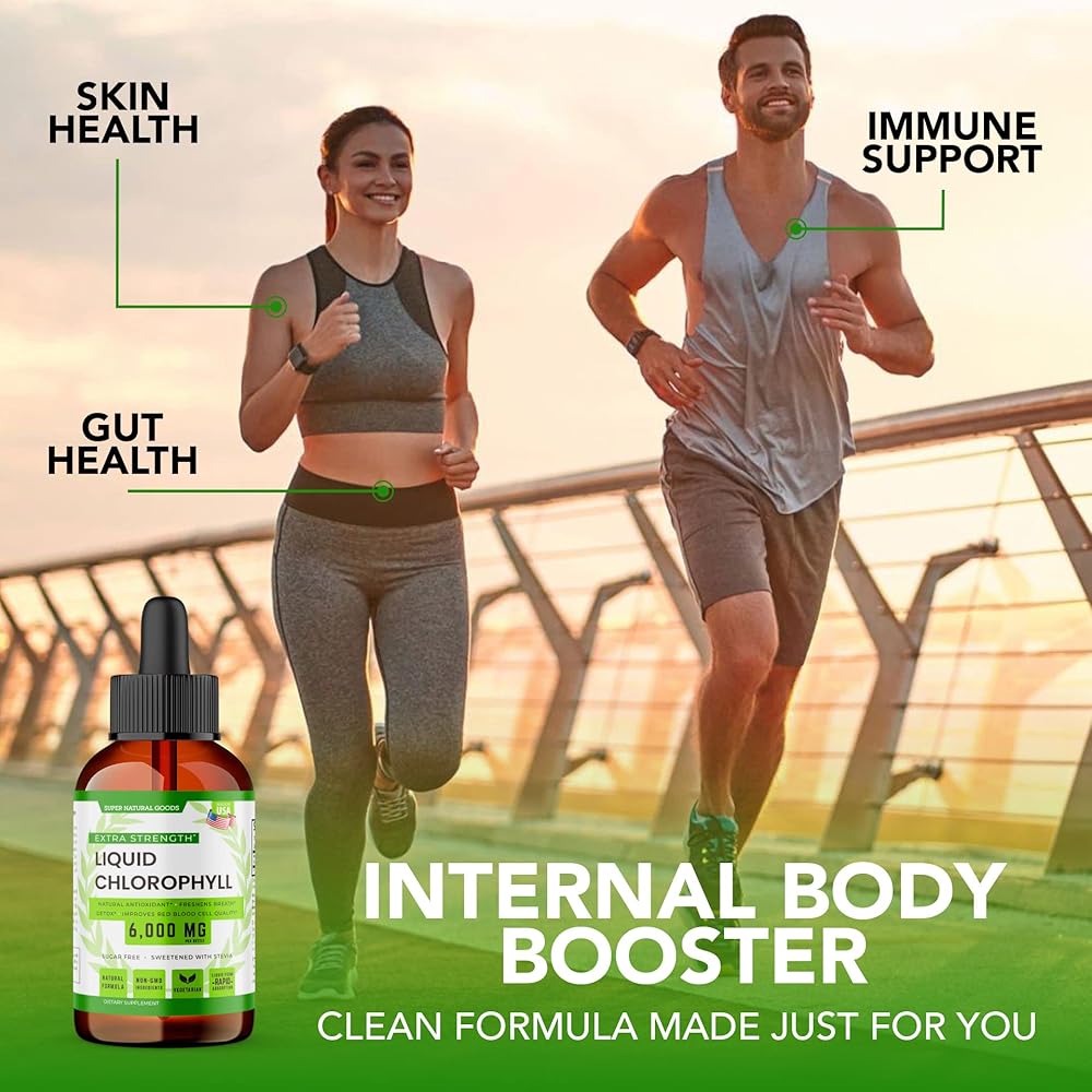 سوبر ناتشورال جودز قطرات سائلة من الكلوروفيل - دعم المناعة، تعزيز الطاقة الصباحية، رائحة الجسم، حب الشباب، دعم الهضم، والتخلص السريع من السموم - طبيعية ونباتية