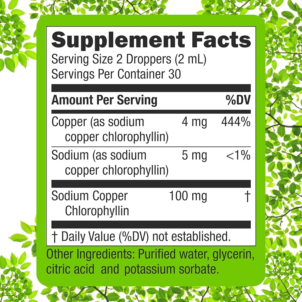 سائل الامتصاص الأقصى: يحتوي الكلوروفيل السائل على أعلى توافر بيولوجي مقارنة بحبوب ومسحوق الكلوروفيل. يُفضل تناوله مخففًا في الماء (أي مستخلص نباتي أخضر مركز يمكن أن يلطخ الأسنان) أو إذا كنت تفضل ذلك، يمكنك وضعه تحت لسانك. أفضل النتائج إذا تم الاحتفاظ بها في الثلاجة واستهلاكها خلال شهر واحد من الفتح.