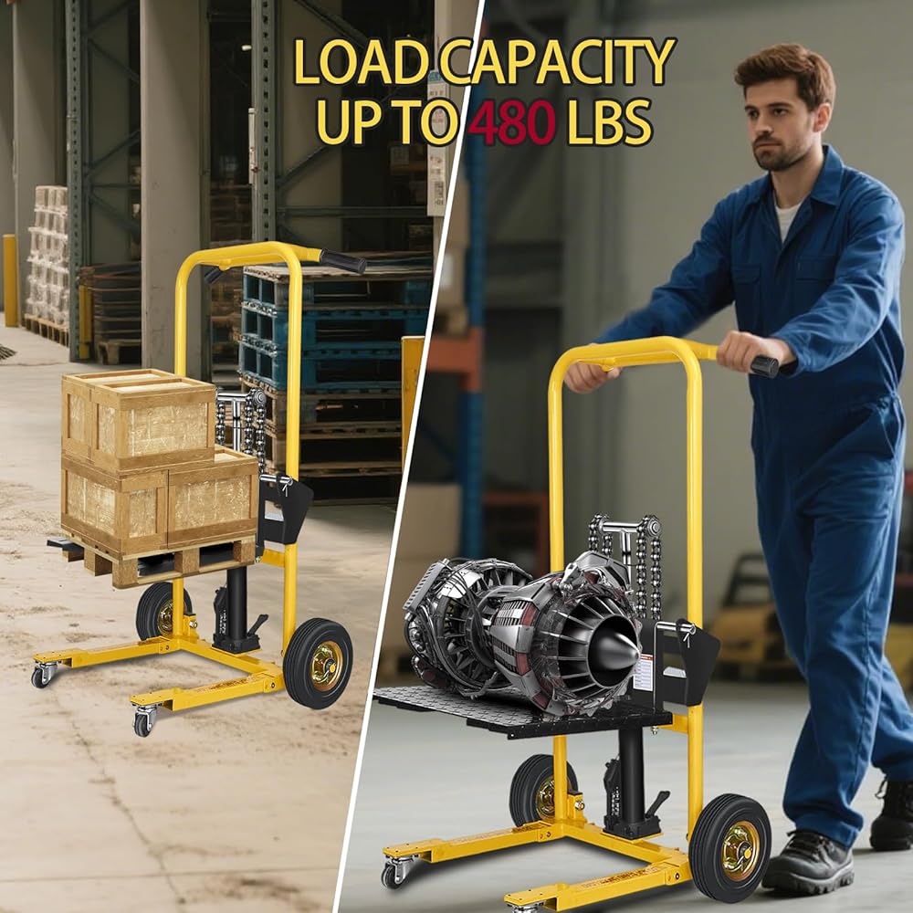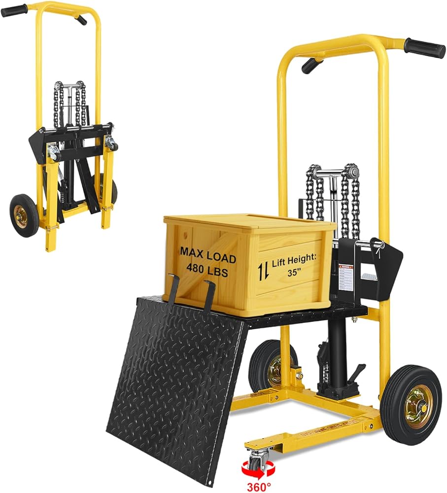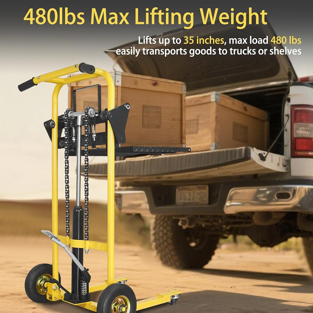 مكدس ونش هيدروليكي للمواد الشاقة مع عجلات دوارة ، مصاعد المواد 480 رطلاً ، طاولة الرفع الهيدروليكي للبليت ، 35 بوصة ، عربة طاولة مقبس البليت