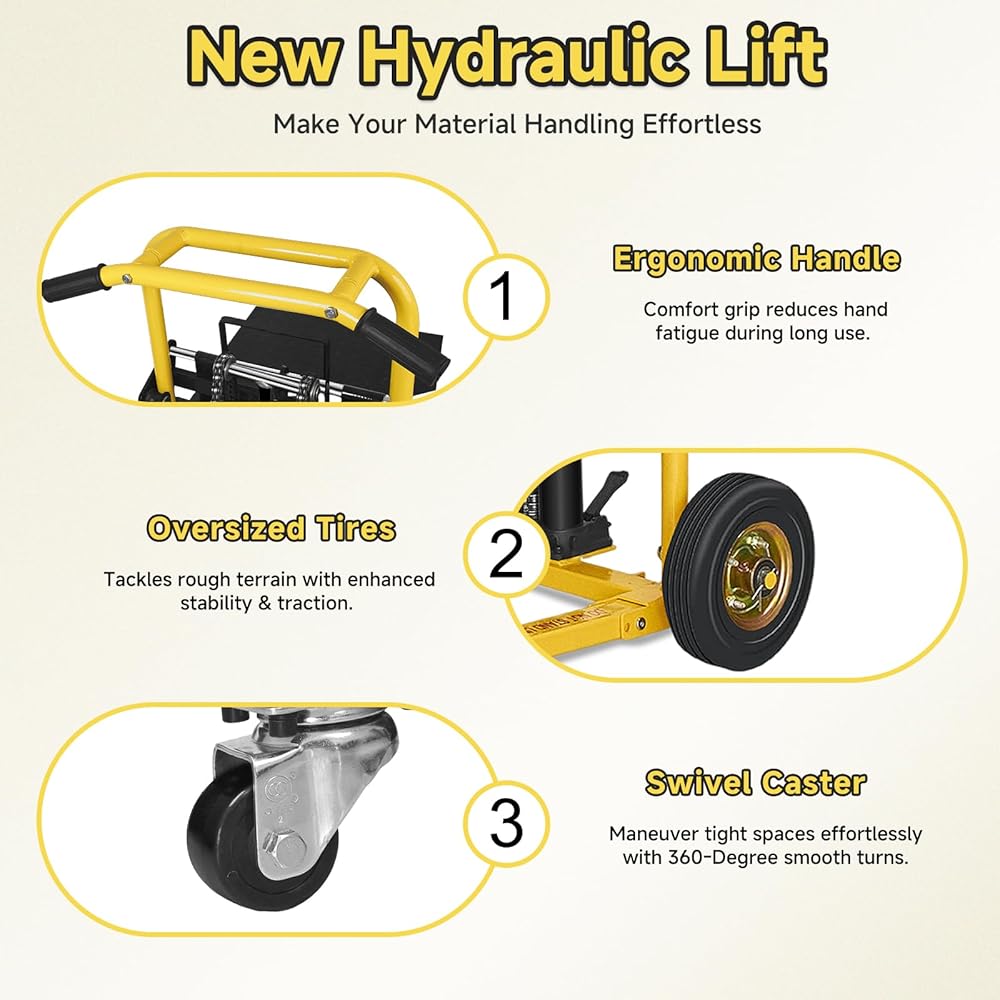 • Dolly Easy-Maneuver Hydraulic Dolly: يضم عجلات دوارة ناعمة ، توفر عربة الرفع الهيدروليكية حركة دون عناء ، مثالية للمساحات الضيقة والزوايا الضيقة. تدور العجلات الخلفية بسلاسة ، مما يقلل من جهود التوجيه. يضمن المقبض المريح التشغيل السلس ، ويقلل من الضغط ، ويعزز الإنتاجية
