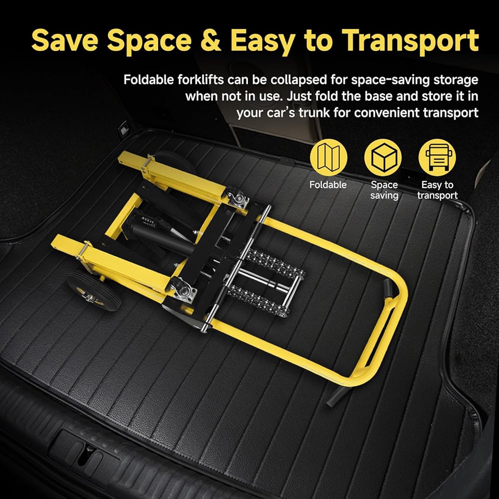 • عربة الرفع الهيدروليكية القابلة للطي: تتميز هذه العربة الهيدروليكية بتصميم مضغوط قابل للطي (47.6 "" H x 32.7 "" L) لسهولة التنقل والتخزين. مثالي لمختلف البيئات ، فإنه يناسب مساحات ضيقة ، ويوفر المرونة والراحة للاستخدام التجاري/الصناعي كرفع هيدروليكي متعدد الاستخدامات