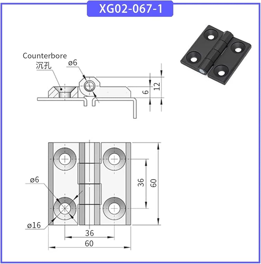 مفصلي سميك من سبيكة الزنك 1pcs (XG02-067-1-أسود)