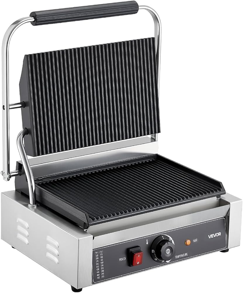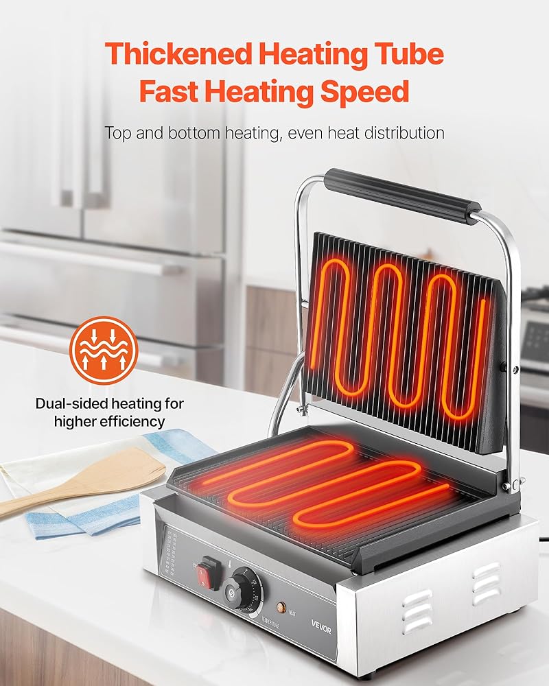 Vevor Commercial Panini Grill ، 1800W صانع شطيرة شطيرة كهربائية ، شطائر من الفولاذ المقاوم للصدأ مكبس مع مقبض والتحكم في درجة الحرارة ، 13.5 × 9.3