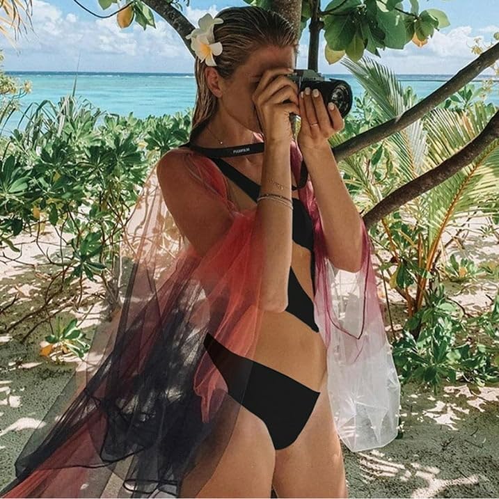 Women One Piece Bikini Irregular Stripe Color Block Sexy Perspective Swimsuit Bathing Summer Clothes