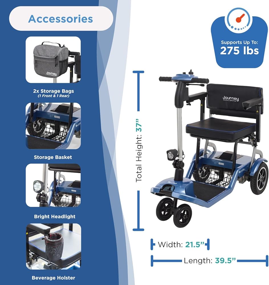 سكوتر التنقل القابل للطي خفيفة الوزن - يزن 40.8 رطلاً فقط بدون البطارية ، لذلك من السهل نقل كرسي التنقل المبطن لأسفل لسهولة التخزين في سيارتك أو منزلك