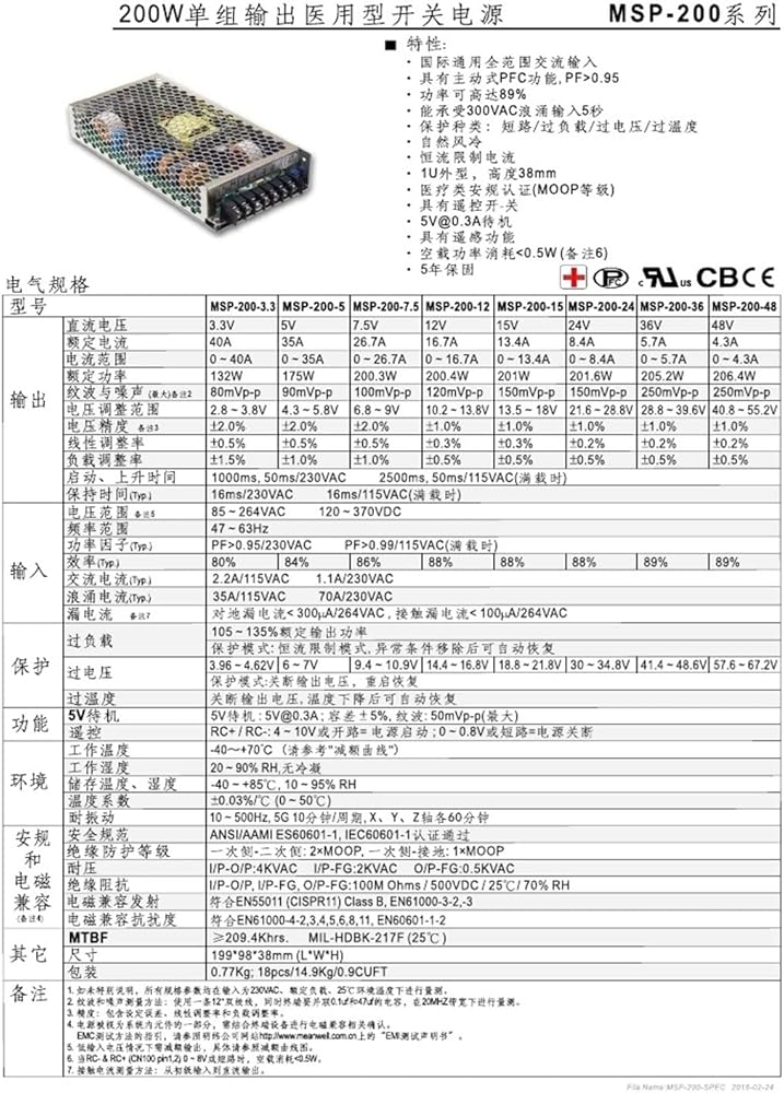MSP-200 200W Switching Power Supply 3.3/5/7.5/12/15/24/36/48V