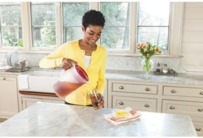 • Three-position lid that turns for free pouring, pouring with ice guard or closed
