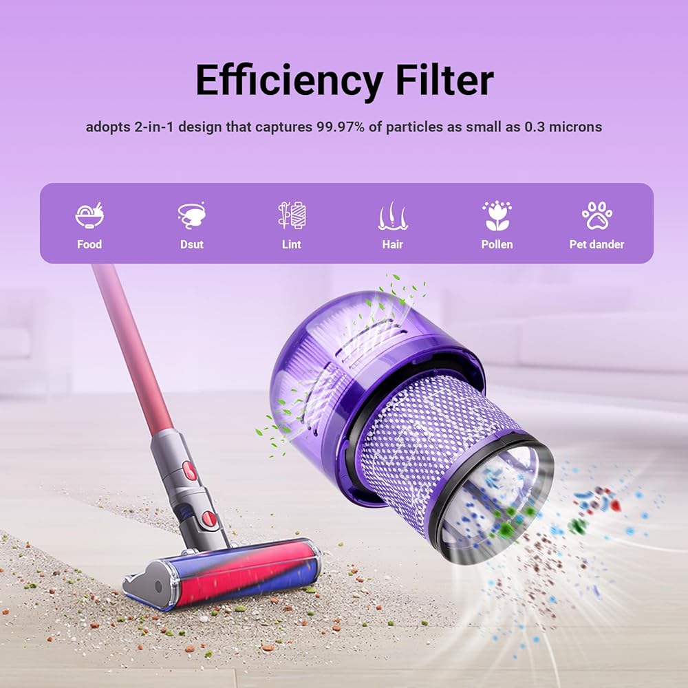 ---Filter plays an important role for the vacuum cleaner, so choosing high quality and durable filter with maximum-efficiency can help you save more money for family. The premium for V11 vacuum filter adopts two-in-one design to trap trash ,dirt, pets hair in corners and edges