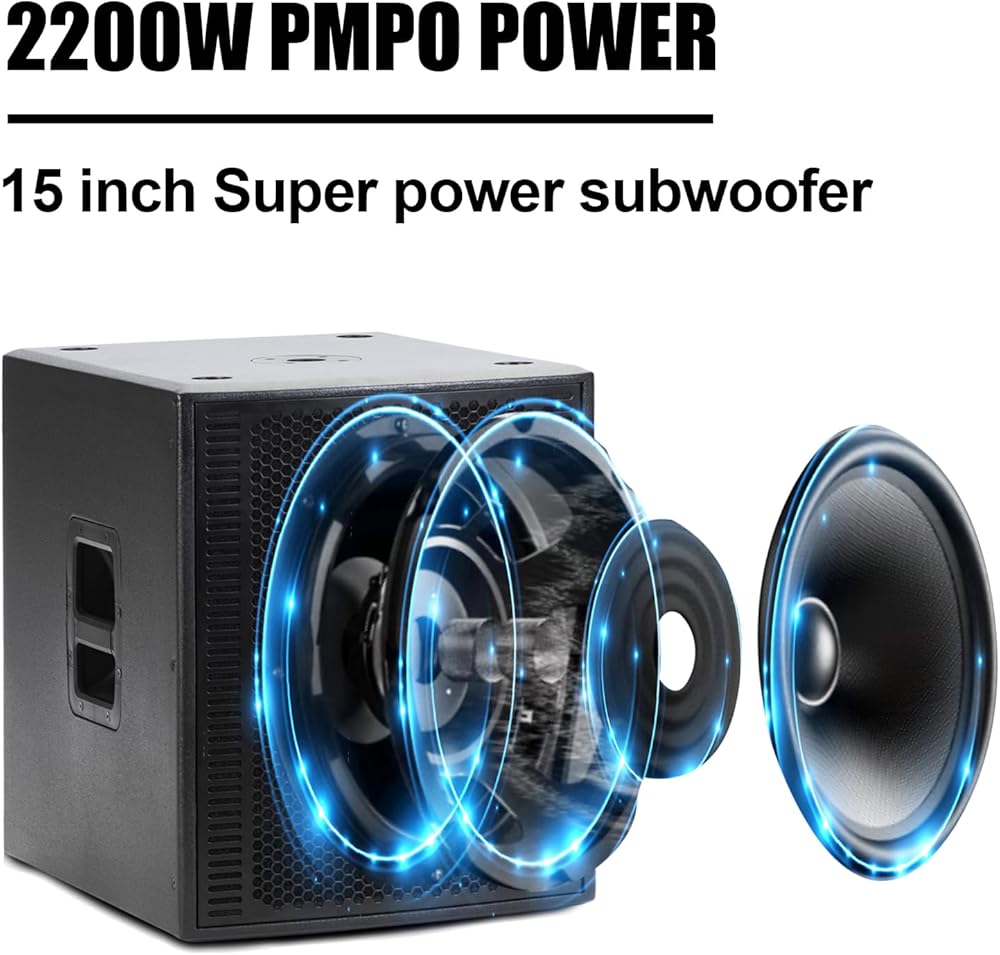 【2000 Watt Power】: تم تجهيز نظام مكبر الصوت عالية الطاقة هذا مع SPROOFER 15 بوصة وثمانية 3.5 بوصة سائق NOODYMIUM W/ 2000 WATT PEAK/ 1000 WATTS RMS في 4 أوم للنسخة الكاملة للاستريو المحيطي واستجابة باس مثيرة للإعجاب.