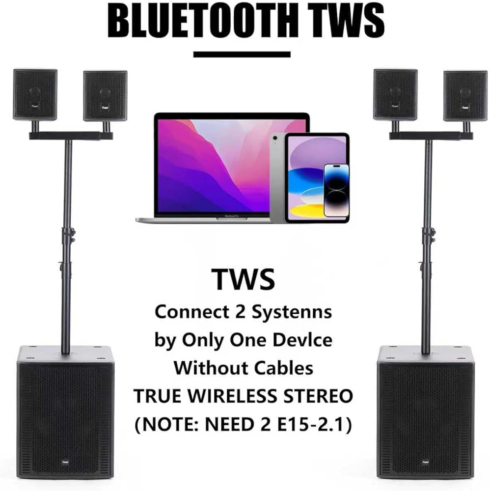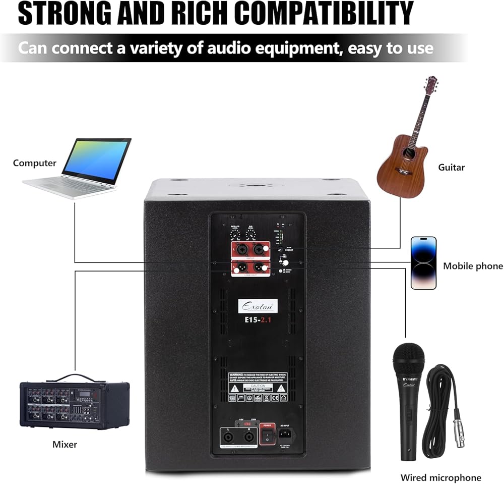 【متوافق مع Bluetooth】: Exoton S-1503 PA PA SYSTEM SENEPers مع مكبرات الصوت المدمجة في مضخم مدمج مع Bluetooth لدفق الموسيقى اللاسلكية ويعمل مع جميع أجهزة اليوم مثل iPhone و Android و Smartphone و iPad و Tablet و PC ، وأكثر. USB/BT/XLR/RCA Audio يمكن التبديل.