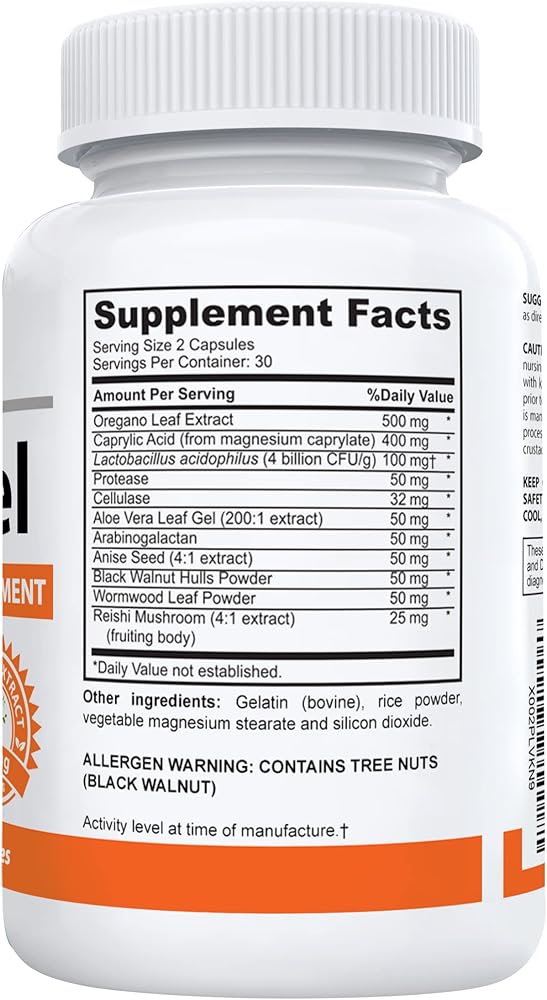 - حمض الكابريليك - زيت الأوريجانو - الشيح - الأسيدوفيلوس - السيلولاز - الجوز الأسود - البروتياز - الريشي