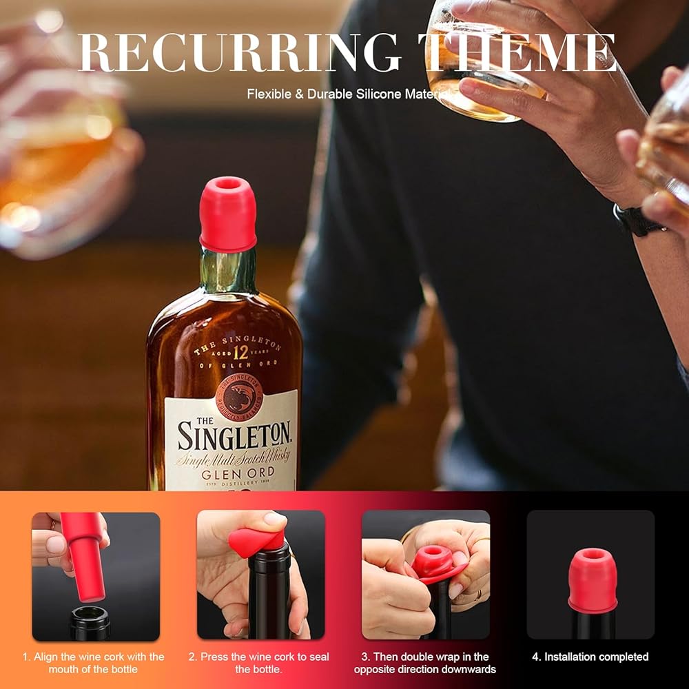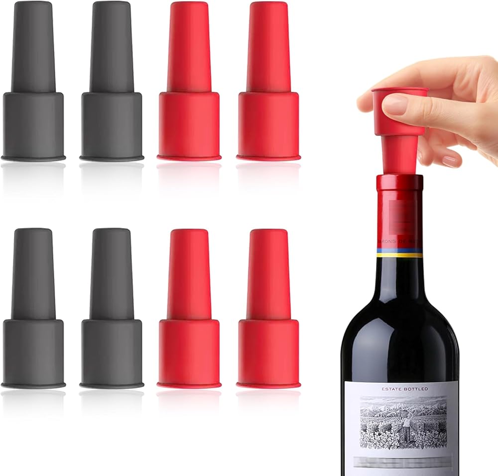 ألوان نابضة بالحياة وقيمة 8 عبوات-احصل على 4 سدادات حمراء و 4 سدادات رمادية لتتناسب مع مطبخك أو هدية مع النبيذ. رائع للحفلات أو الحانات أو الاستخدام اليومي