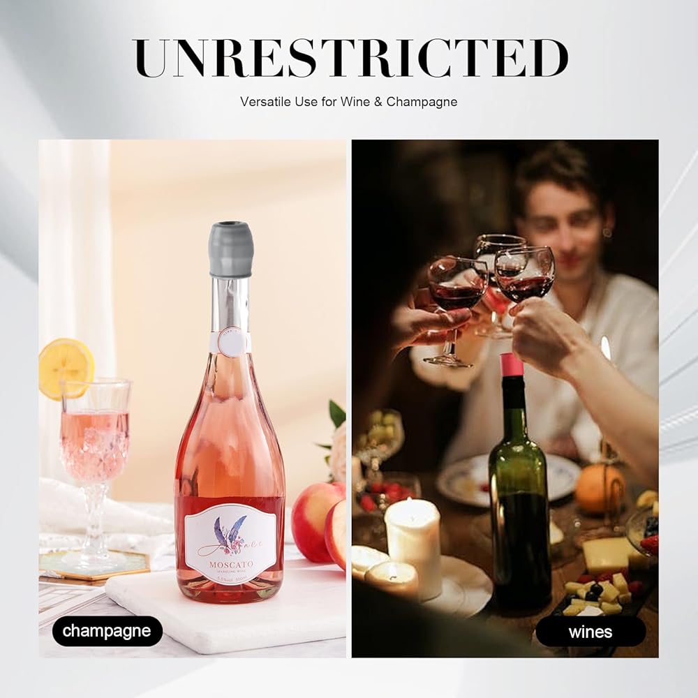 DEABLOCKING و AIROTIGHT DESIGN - تخلق سدادات النبيذ السيليكون لدينا ختمًا آمنًا لمنع التسريبات والحفاظ على الكربنة في النبيذ الفوار أو المشروبات الغازية أو البيرة. تخزين زجاجات منتصبة أو جانبية في الثلاجة بدون انسكابات