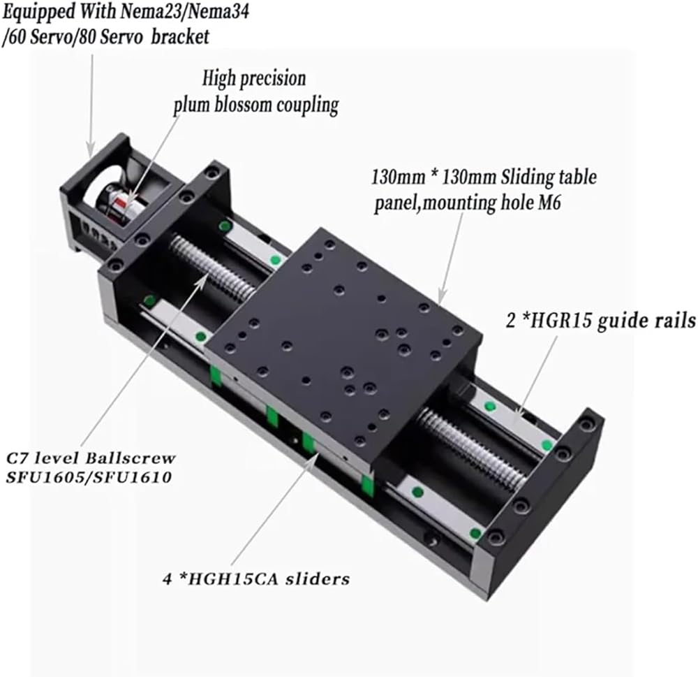 130 وحدة شريحة لوحية من الفولاذ الثقيلة العريضة كرات الكرات SFU1605/SFU1610 السكتة الدماغية 100 ~ 1000mm 4*HGH15CA Slider Mobile -Slider (57 Motor Bracket ، SFU1605 600MM)