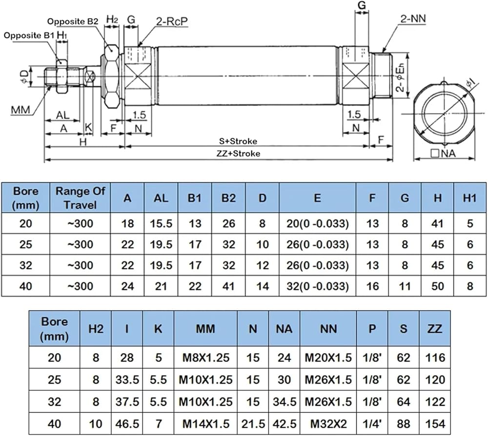 - 1pcs CDM2KB16/20/25/32/40 Series Type Double Acting Mini Pneumatic Air Cylinder Stainless Steel Magnetic Ring 25-500mm Stroke