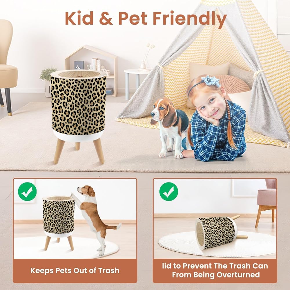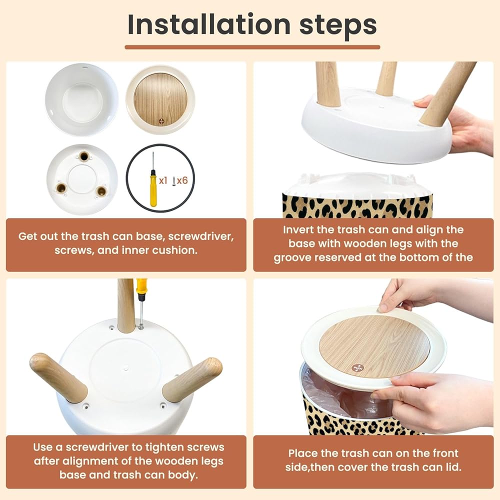 Our garbage can has a slim design and exquisite appearance.No need to bend down to throw garbage. The high three-legged trash can is designed to keep your space dry and tidy.Each cute trash can is equipped with a round interior frame that will keep the storage bags in place.