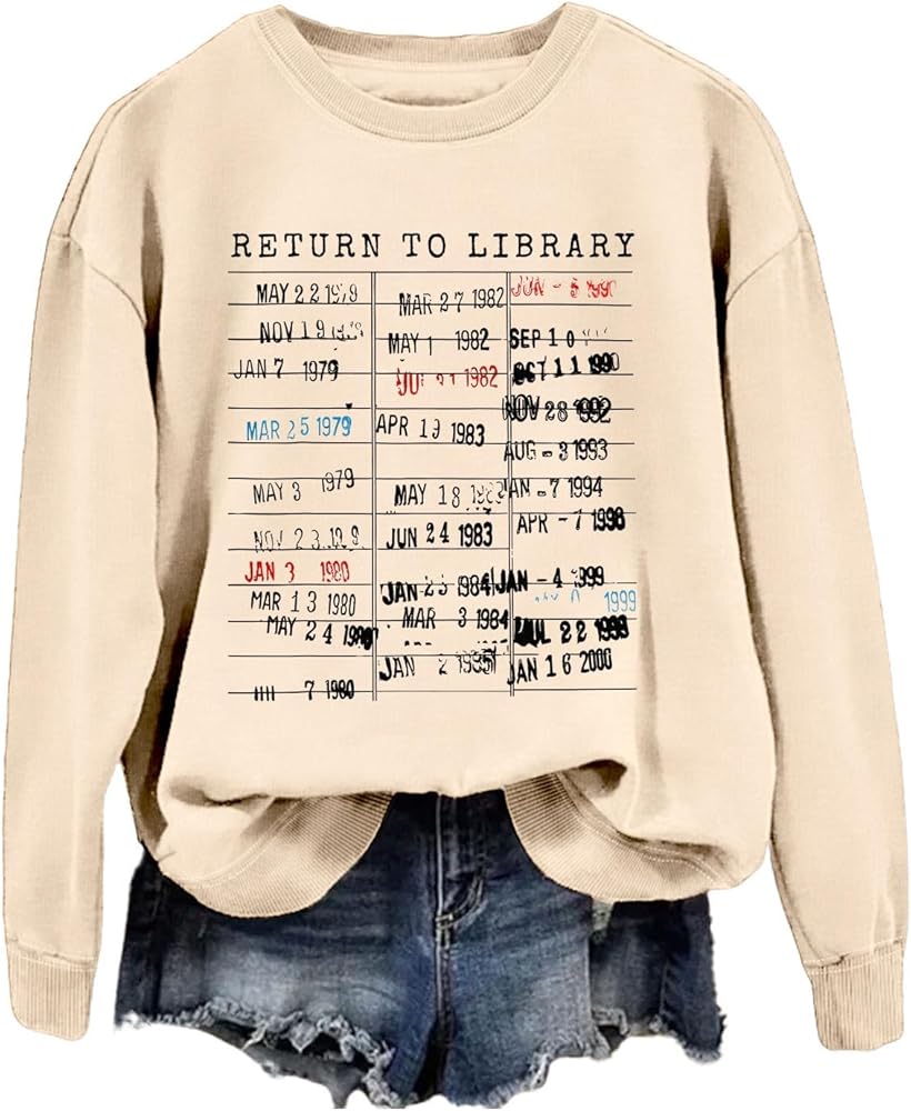 Celebrate Your Bookish Passion with the Vintage "Return to Library" Sweatshirt.