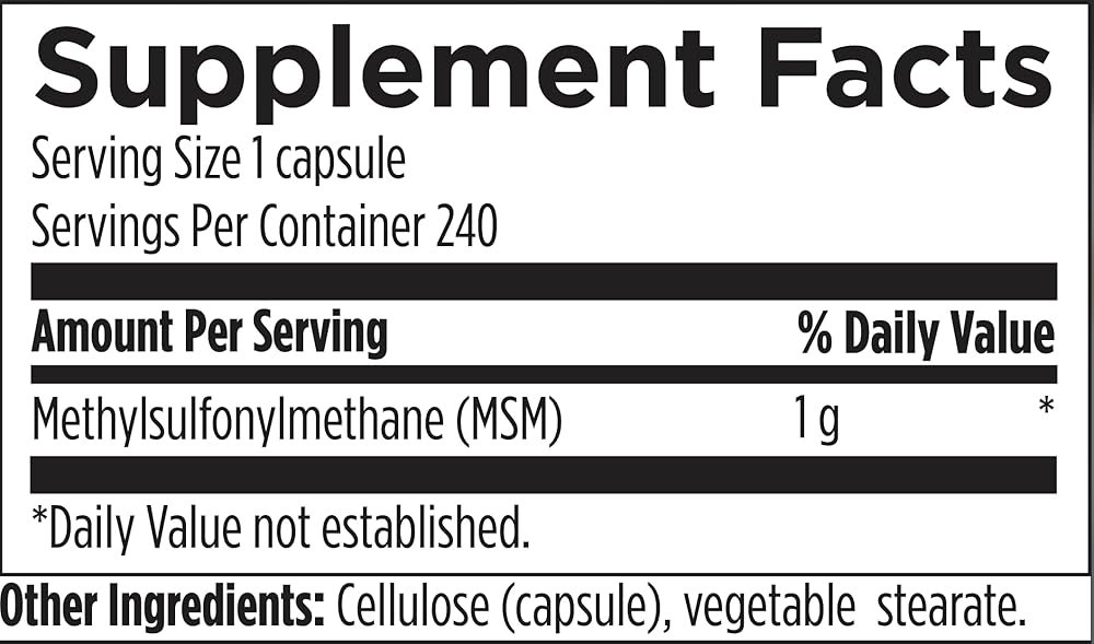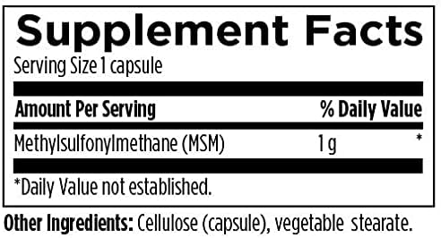 1000 ملغ من MSM لكل كبسولة - 1 جرام من مركب ميثيل سلفونيل ميثان (MSM) الذي يزود الكبريت.
