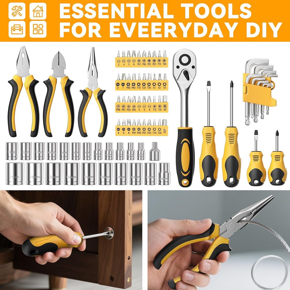 مجموعة أدوات Multi-Scenario والهدية المثالية تشمل أدوات للصيانة التلقائية والإصلاحات المنزلية ومشاريع DIY. الدعاوى الميكانيكا ، والكراجات ، وأصحاب المنازل ، والخريجين ، وما إلى ذلك.