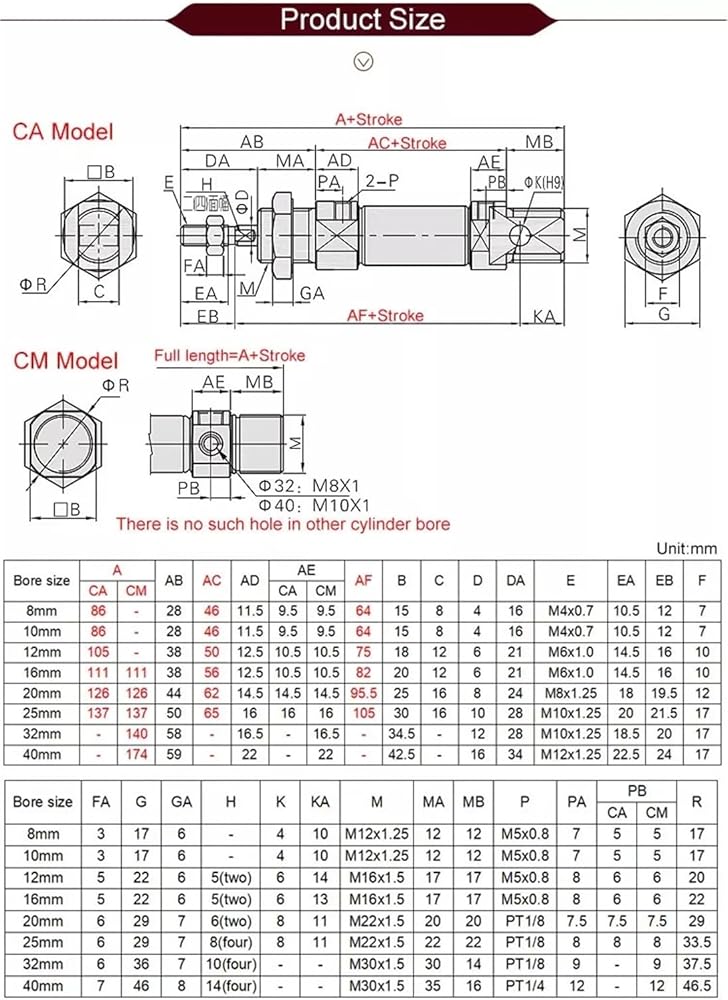 1pcs Mi10/12/16/20/25-10 * 25x30x50x75-S-CA صغيرة الفولاذ المقاوم للصدأ الأسطوانة الهوائية المزدوجة (السكتة الدماغية 100 مم ، التجويف 10 مم)