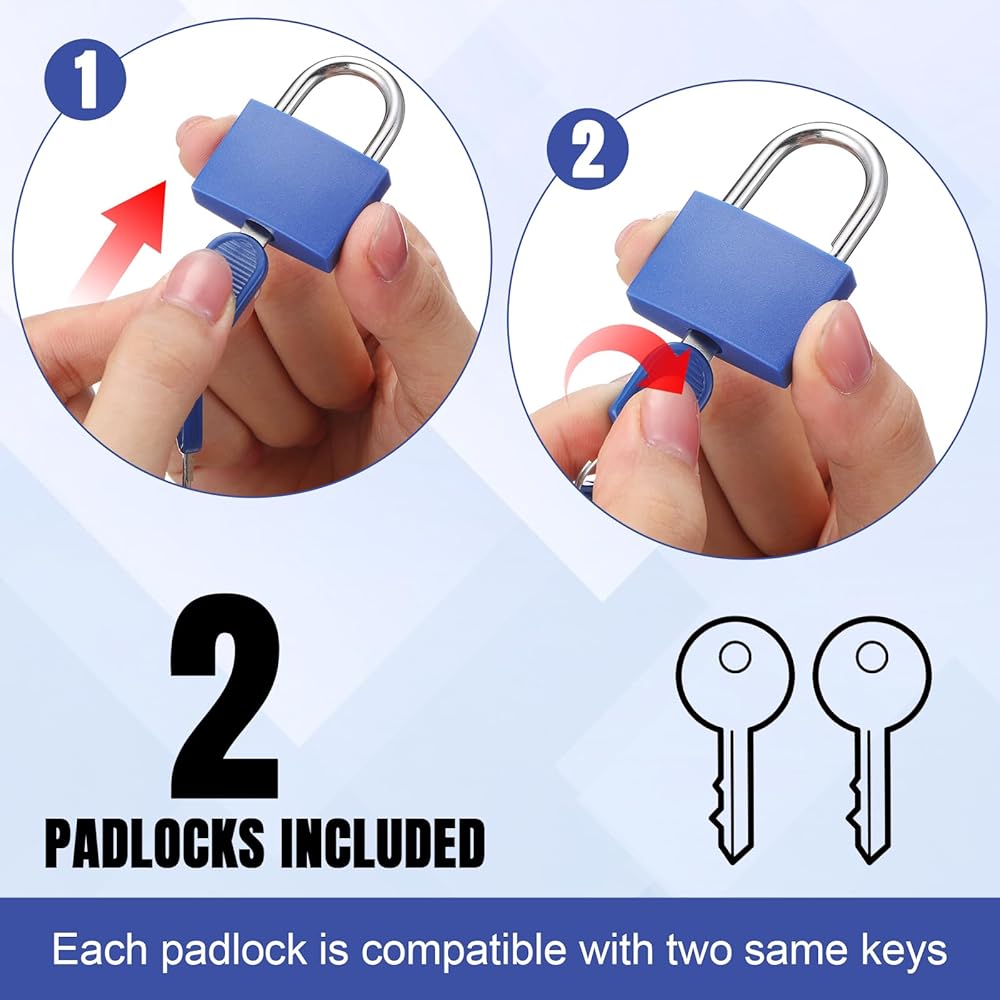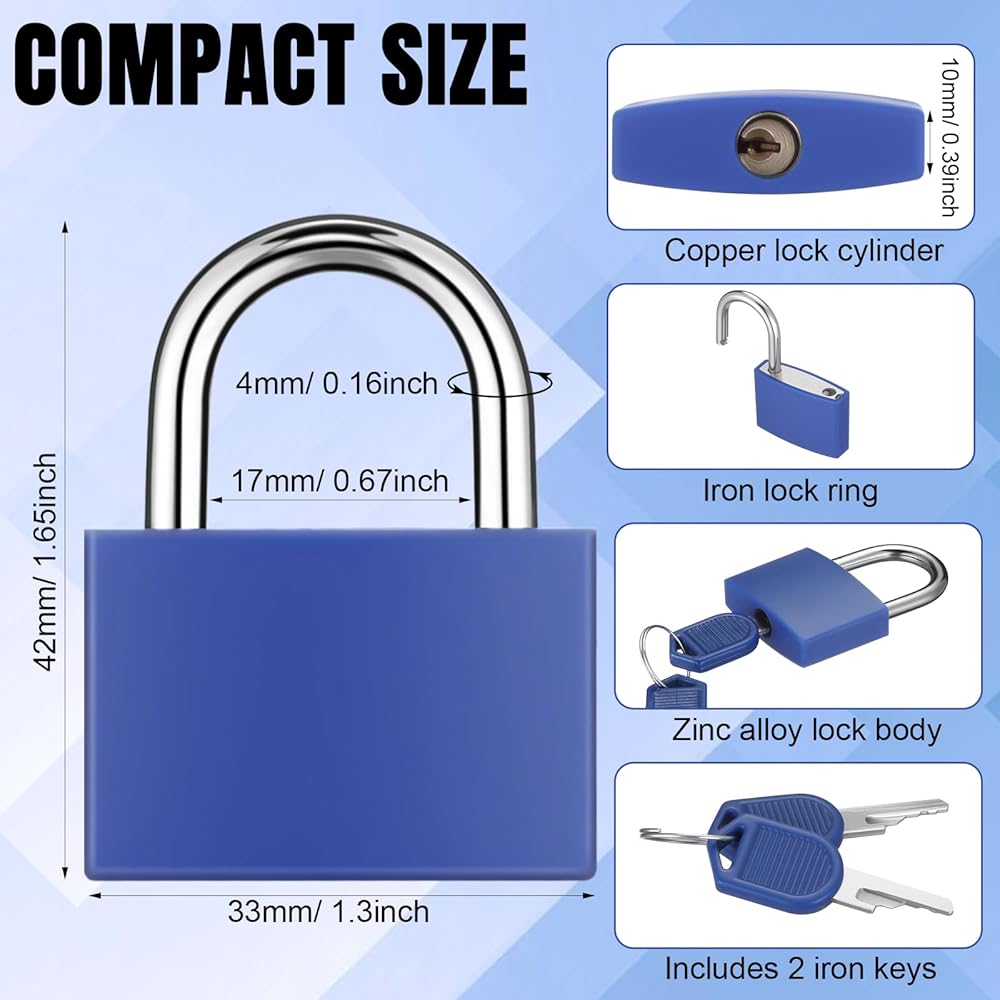 • Compact Size: Measuring about 42mm in length, 33mm in width, and 10mm in thickness, this padlocks with keys features a compact and small design that is not only easy to carry but also convenient to store without taking up much space; You will receive 30 pcs padlocks and 60 pcs keys, with two keys provided per lock, making it convenient for family members to use